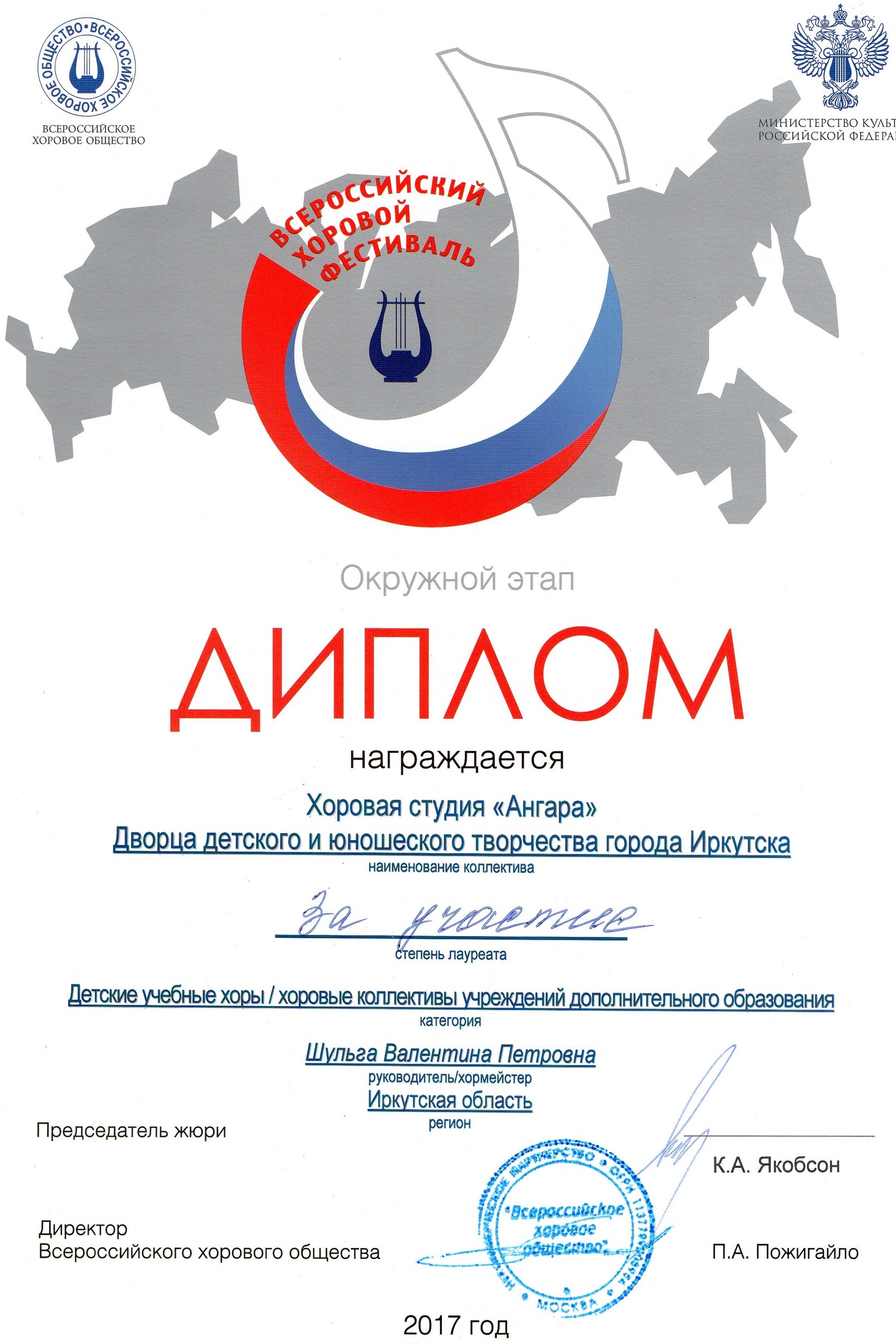 Поздравляем хоровую студию «Ангара», лауреата Всероссийского хорового фестиваля. Желаем успехов и дальнейших Побед!