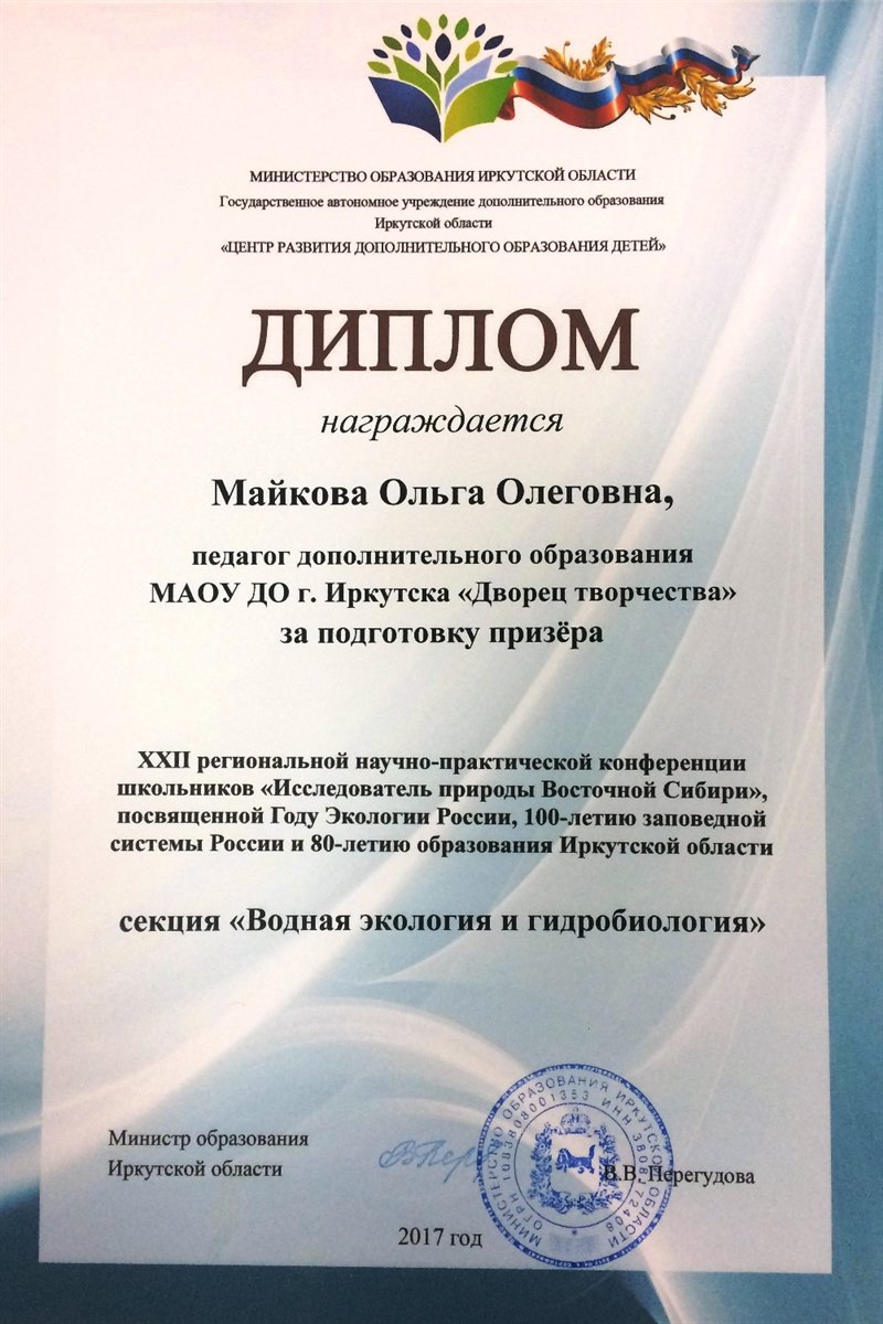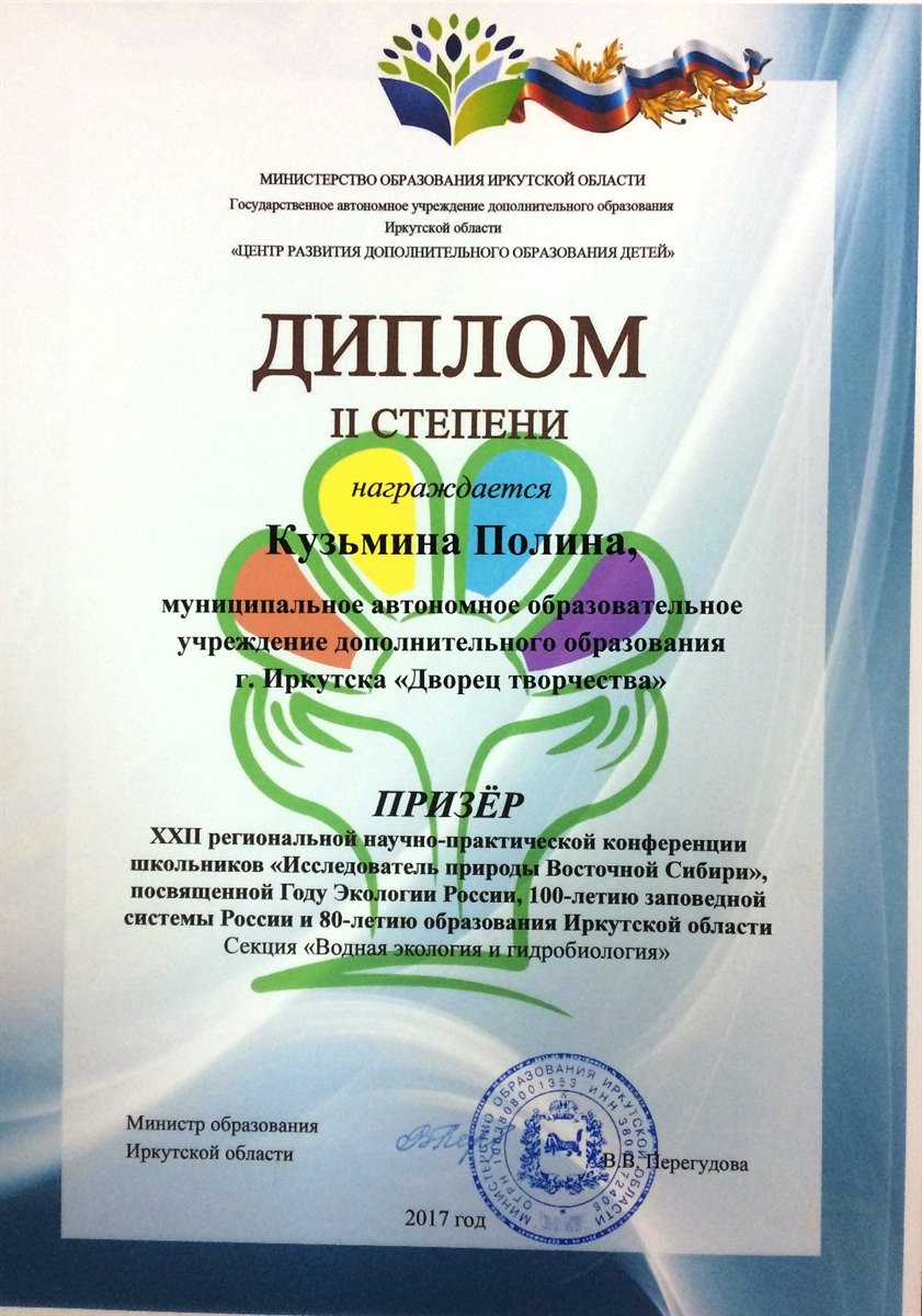 Первые результаты в 2017-2018 учебном году учащихся объединения «Байкаловедение»