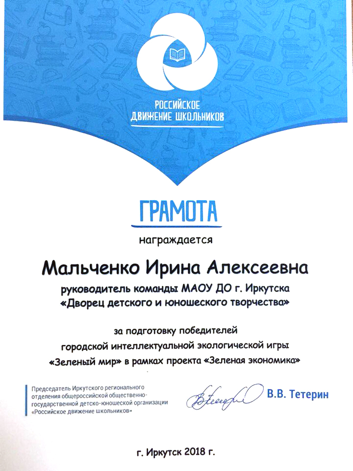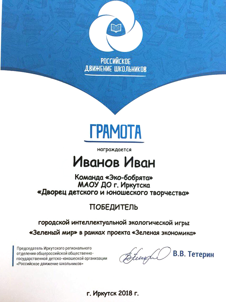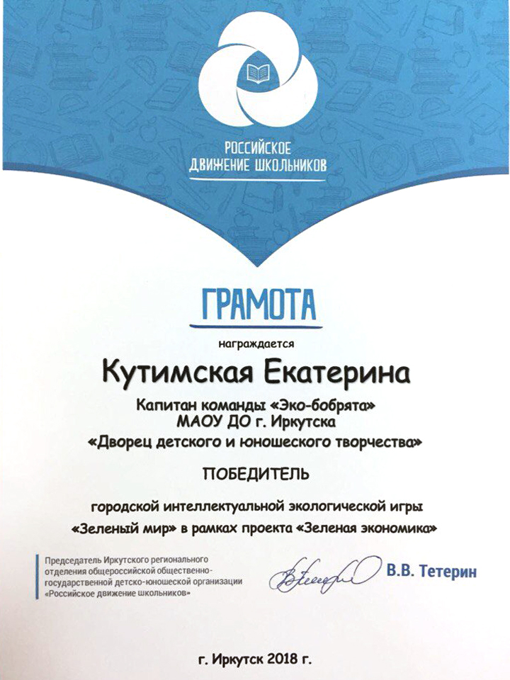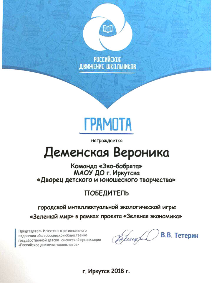 13 марта 2018 года прошел финал городской интеллектуальной экологической игры «Зелёный мир» в рамках проекта «Зелёная экономика», в которой приняло участие 24 команды из образовательных организаций города Иркутска.