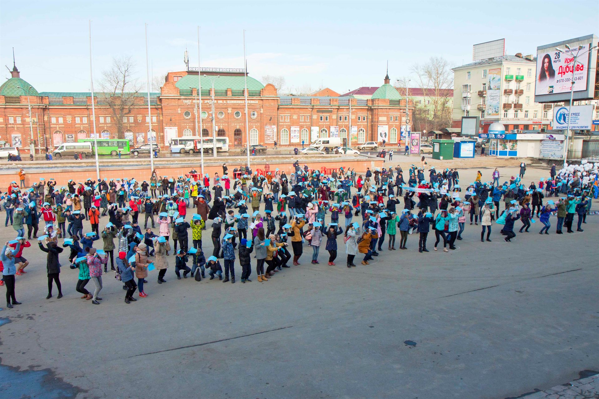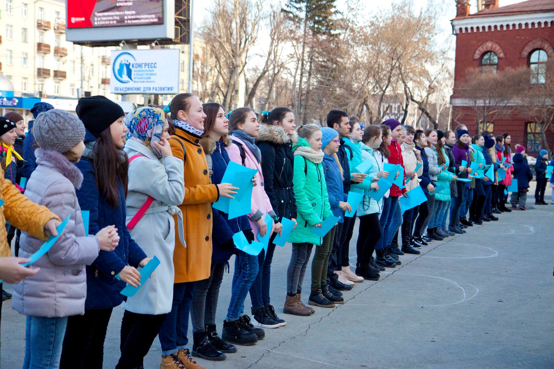 Вчера, 22 марта, в 16.00, вместе с нами, иркутянами, на центральные площади городов России вышли тысячи школьников и студентов для участия во Всероссийском флешмобе «Голубая лента». Центральным же событием в этом году станет мероприятие в Москве на площадке Музея Победы на Поклонной горе. Мероприятие будет символизировать передачу эстафеты от завершившегося Года экологии стартовавшему Году добровольца.