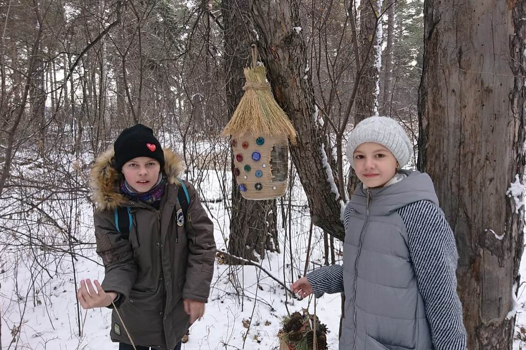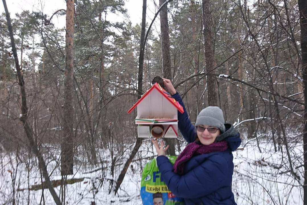 Обучающие эколого-туристского отдела отправились в этот день в Кайский бор, покормить птиц и полюбоваться их красотой.
