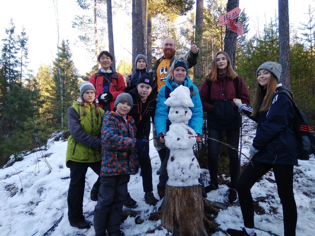 Выполнив намеченную культурную программу, выдвинулись в обратный путь. На обратной дороге, возле моста через речку Большая Олха, решили слепить небольшого снеговика, благо снега хватало, ведь в городе ещё не скоро так позабавишься, а тут, пожалуйста, делай не хочу.