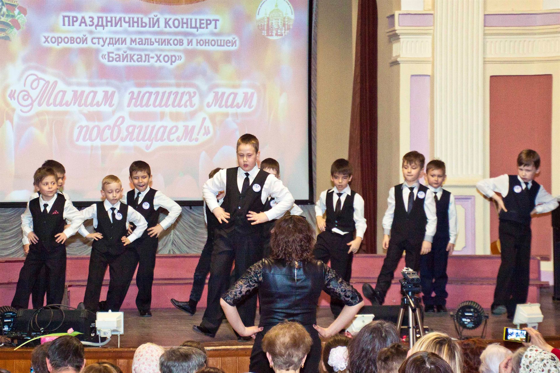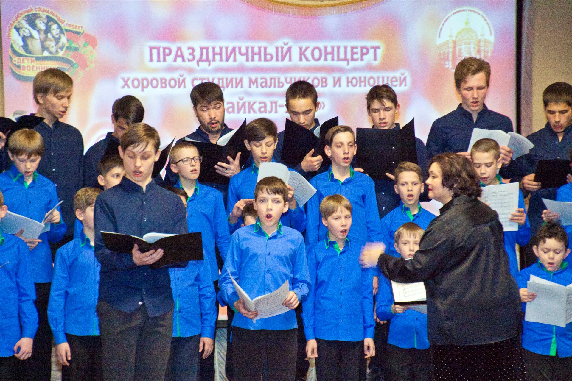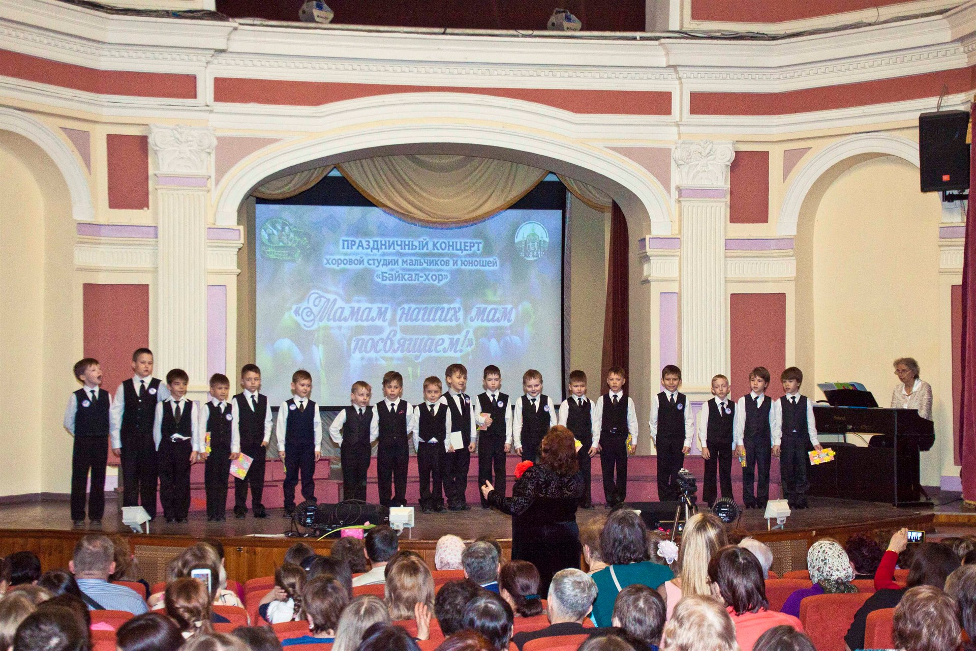 7 марта в 18:00 на сцене «Дворца творчества», в рамках реализации инновационного социального проекта «Дети военных лет», состоялся праздничный концерт хоровой студии мальчиков и юношей «Байкал-хор», руководитель Кучеренко Марина Юрьевна, «Мамам наших мам посвящаем!».