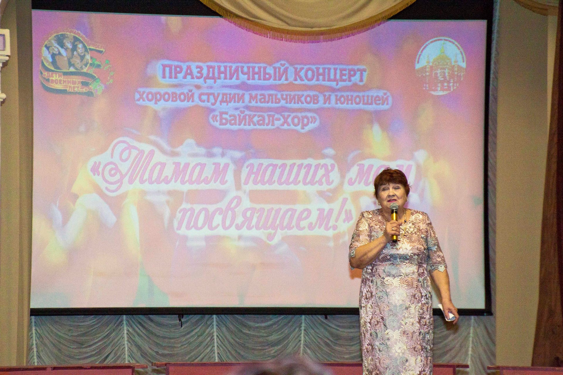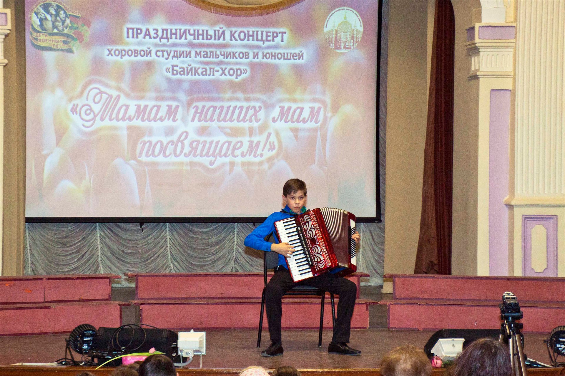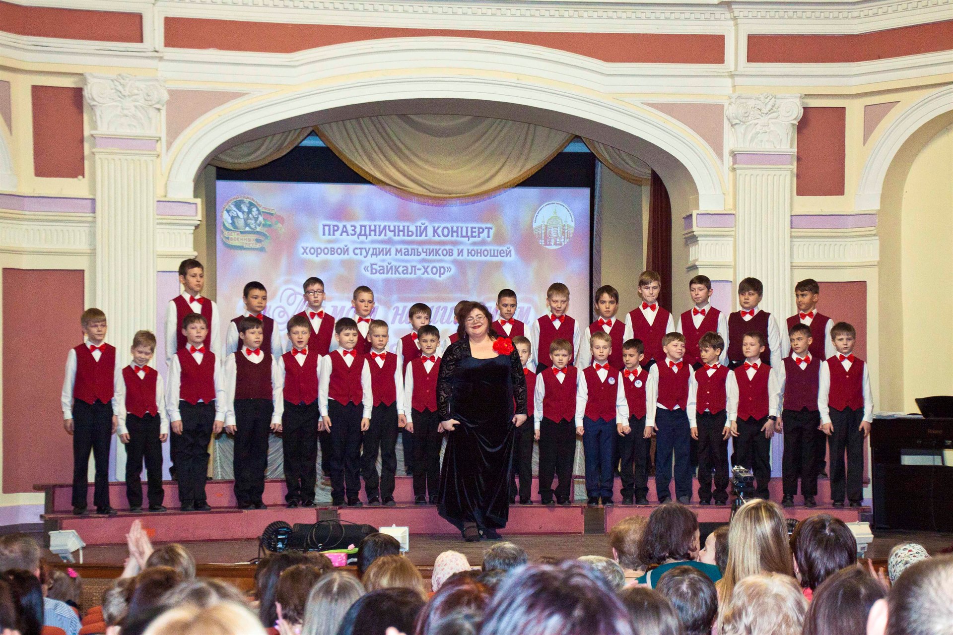 7 марта в 18:00 на сцене «Дворца творчества», в рамках реализации инновационного социального проекта «Дети военных лет», состоялся праздничный концерт хоровой студии мальчиков и юношей «Байкал-хор», руководитель Кучеренко Марина Юрьевна, «Мамам наших мам посвящаем!».