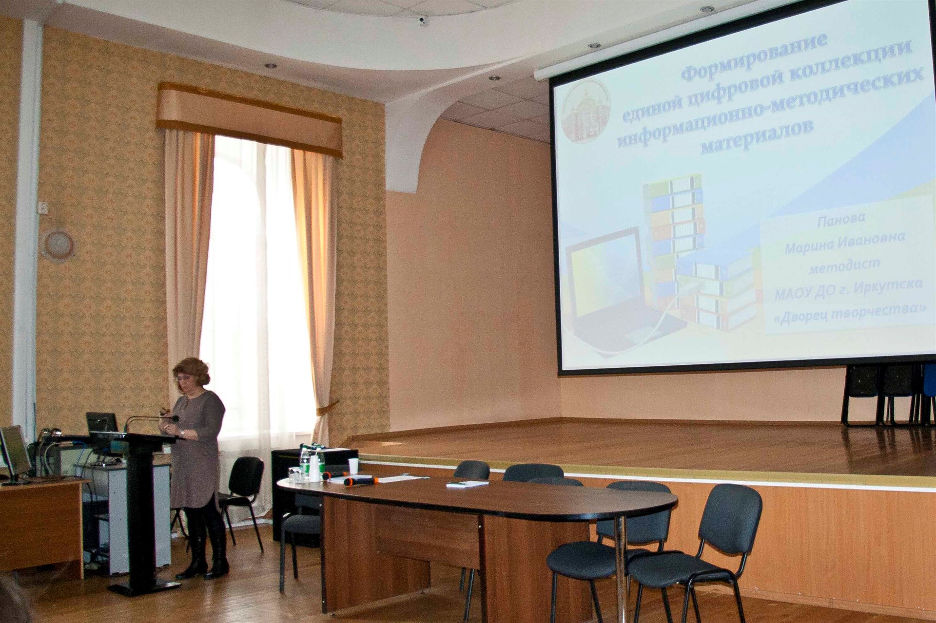За три часа работы были заслушаны 12 выступлений педагогов и методистов 6 муниципальных организаций дополнительного образования Иркутской области. Методист Дворца Панова М.И. рассказала как сформировать единую цифровую коллекцию информационно-методических материалов учреждения и создать виртуальную методическую площадку; педагог-организатор Дворца Рогашкова С.Л. поделилась «лайфхаками» эффективного использования электронной почты и сайта образовательного учреждения; пдо, руководитель кружка "Я – художник" Буйкова Т.А. выступила с докладом об использовании программы SLAIDESHOW на занятиях творческих объединений.