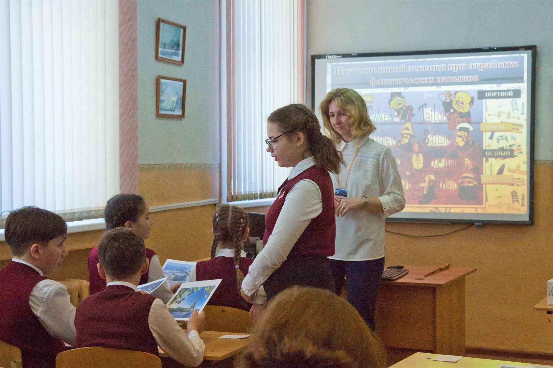 Ребята работали в парах, группе. Марина Валерьевна использовала помощь детей-консультантов при отработке устной речи.