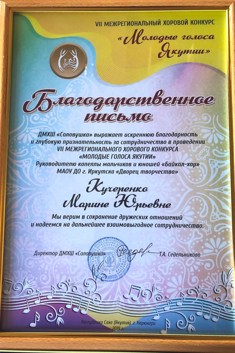 ПОЗДРАВЛЯЕМ С ЗАСЛУЖЕННОЙ ПОБЕДОЙ Кучеренко Марину Юрьевну и Капеллу «Байкал-хор»!