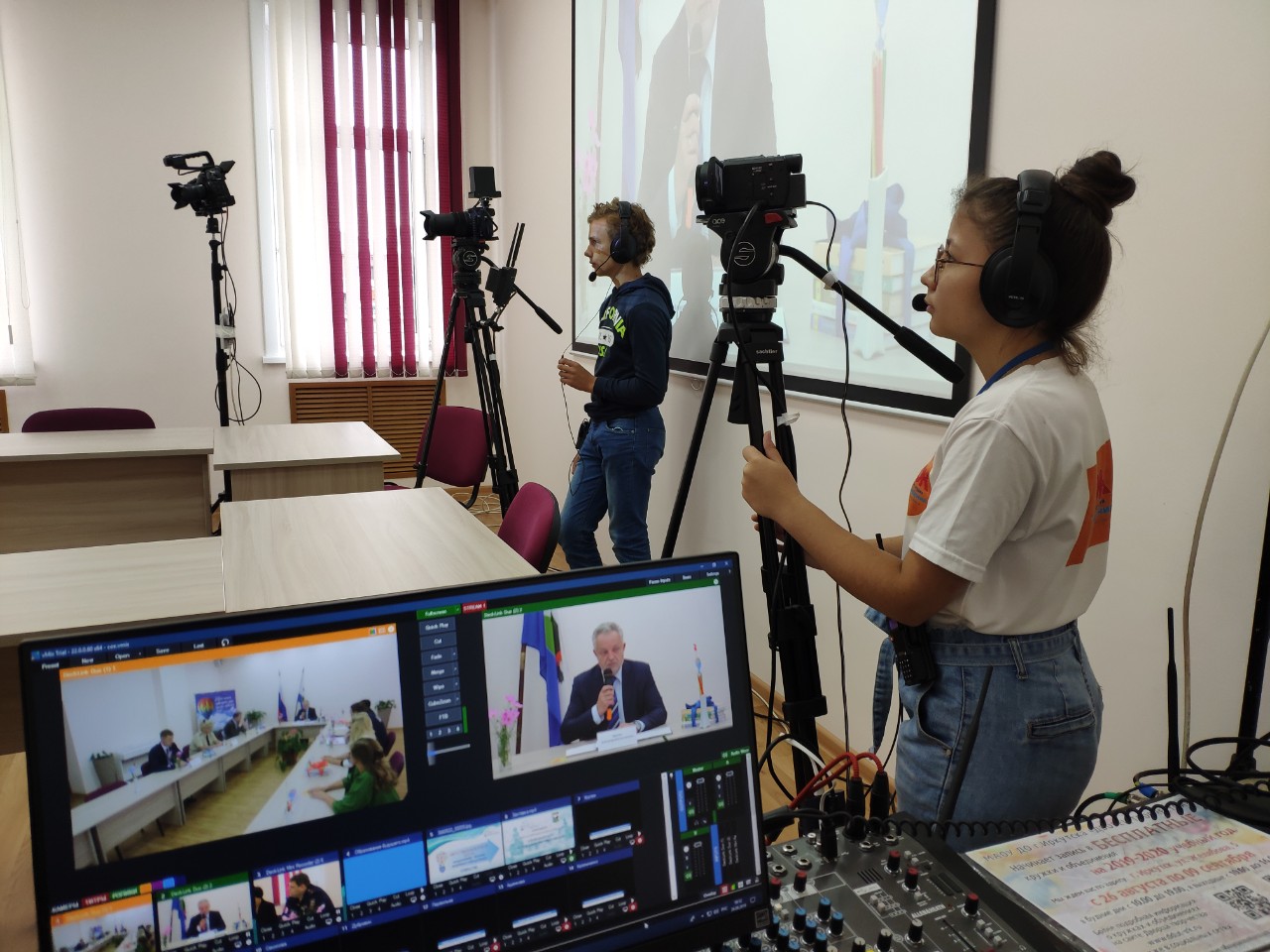 Техническое сопровождение педагогического совета осуществляла студия детского телевидения "СОК" Дворца творчества.