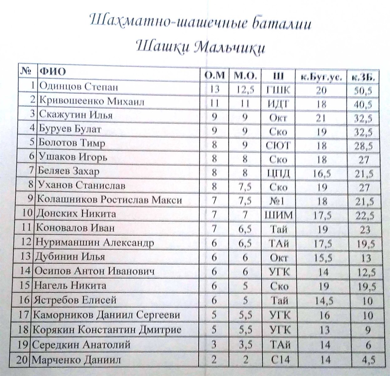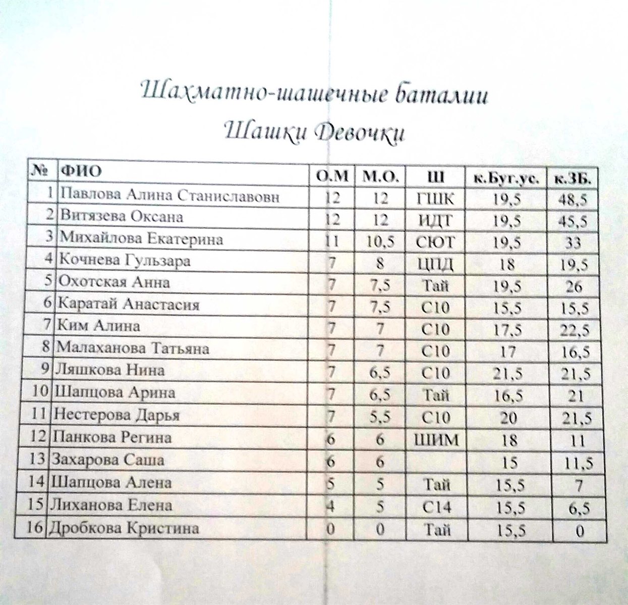 Итоги шашки: