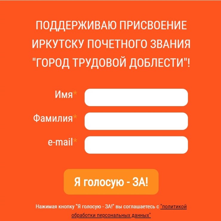 1 марта 2020 года президент РФ Владимир Путин подписал закон, который вводит новое почетное звание – "Город трудовой доблести" для тех населенных пунктов, жители которых своим трудом внесли значительный вклад в достижение Победы в Великой Отечественной войне 1941-1945 годов. Голосуй «ЗА!», чтобы это звание получил Иркутск!