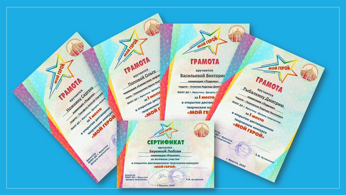 С 20 апреля 2020 года по 5 мая 2020 года отдел декоративно-прикладного и технического творчества Дворца творчества приводил дистанционный творческий конкурс "Мой герой", в котором приняли участие кружковцы Дворца творчества и их родители.