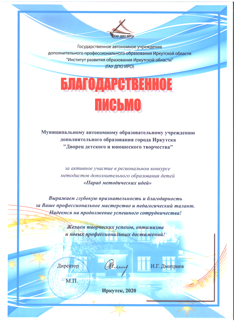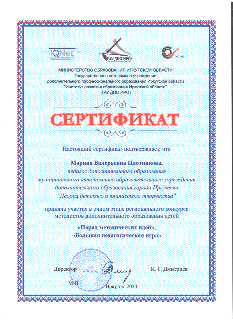 С 16 по 20 ноября 2020 года центром развития дополнительного образования ГАУ ДПО ИРО проводился очный этап конкурса методистов «Парад методических идей» на сайте «Большая педагогическая игра». Мероприятие можно смотреть по ссылке.
