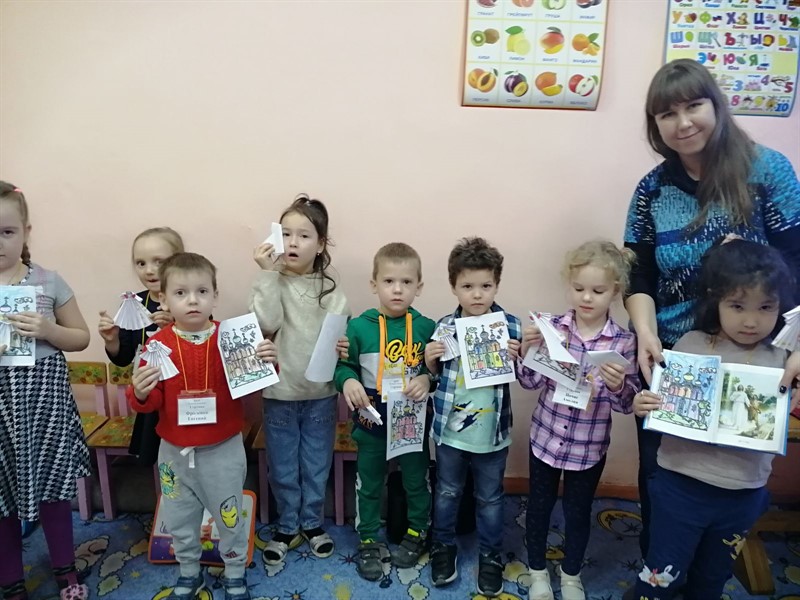 19 января – праздник Крещение Господне, в Школе раннего развития прошёл открытый урок в 1-ой и 2-ой группах, который провели педагог по рисованию ШРР Бондаренко Анастасия Владимировна и библиотекарь Дворца творчества Тростина Нина Валентиновна.