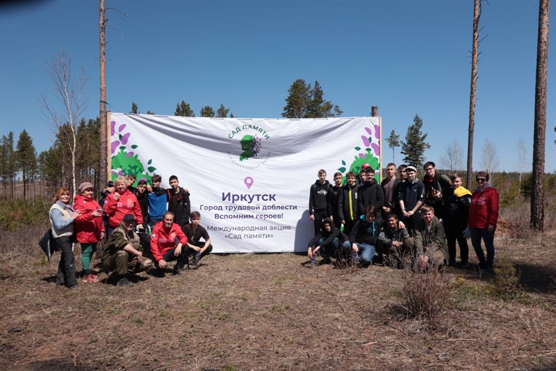 "Сад Памяти" – международная акция, посвящённая событиям Великой Отечественной войны. Вместе мы высадили 27 миллионов деревьев. Это не только памятная, но и экологическая, лесовосстановительная акция. Дружной компанией эколого-туристский отдел Дворца творчества, 14 мая 2021 года, высадил сеянцы сосны сибирской на местах бывших горельников на территории Иркутского лесничества. Организатор акции – Министерство Лесного комплекса Иркутской области.