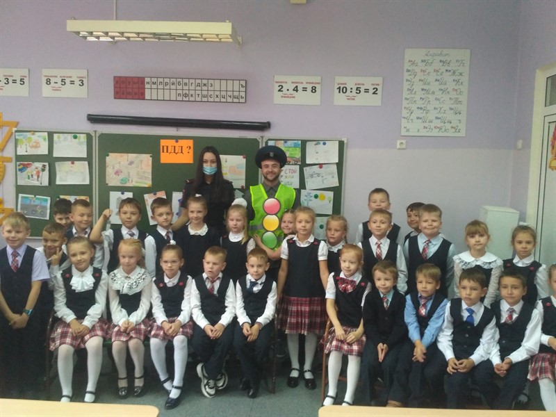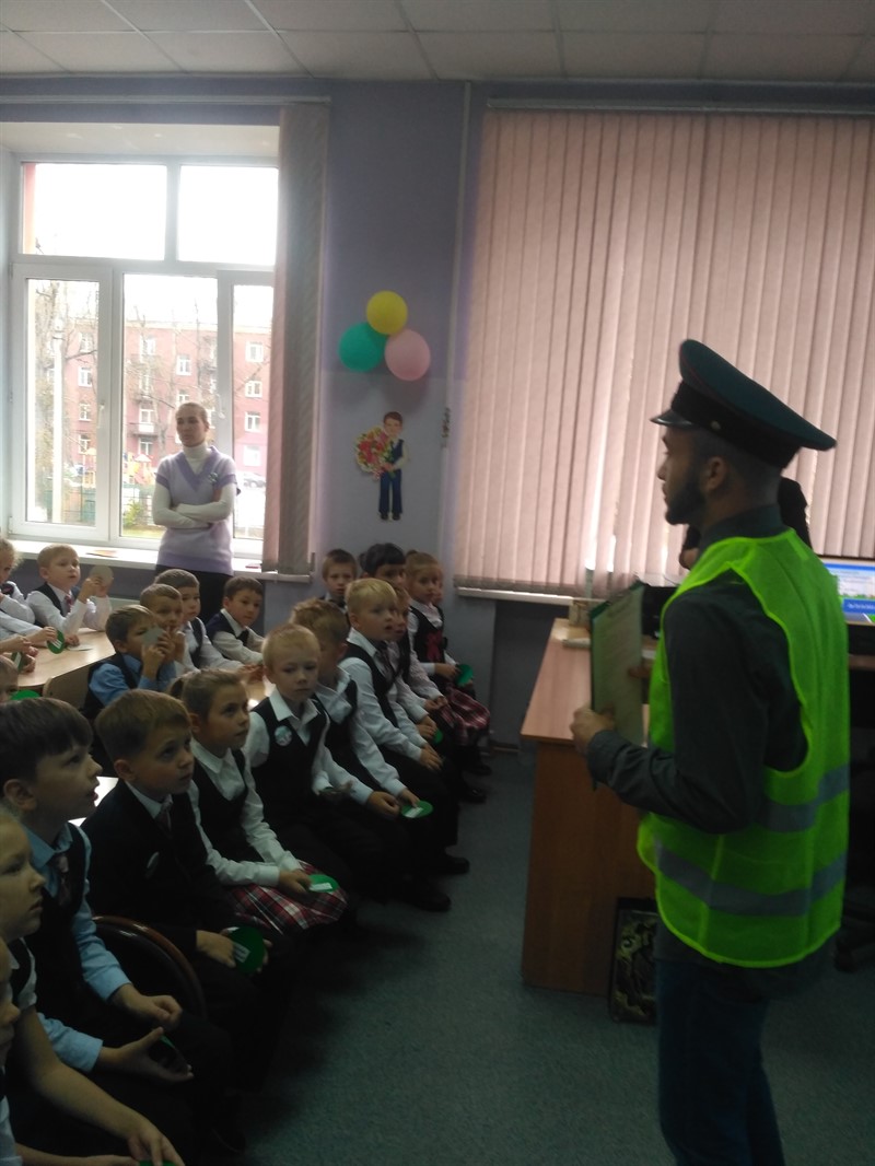 Данное мероприятие входит в цикл акций, проводимых в образовательной организация Иркутска в рамках Городской профилактической акции «Молодое поколение за культуру безопасности на проезжей части. За руку с детством». После беседы с инспектором в гости к первоклассникам заглянул Светофор Светофорович, который в игровой форме проверил знания у ребят по правилам дорожного движения. Также школьникам были вручены светоотражающие брелки.