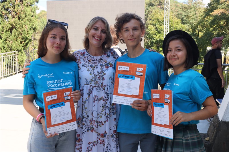 Учащиеся медиастудии "СОК" Дворца творчества г. Иркутска – София Филиппова, Нелли Черных, Вадим Кривошеенко и их руководитель Наталья Леонидовна Мельникова стали активными участниками смены. Они получили приглашение на форум, одержав победу в заочном конкурсе «Диалог поколений», представив документальный фильм «Живут старинные ремёсла»