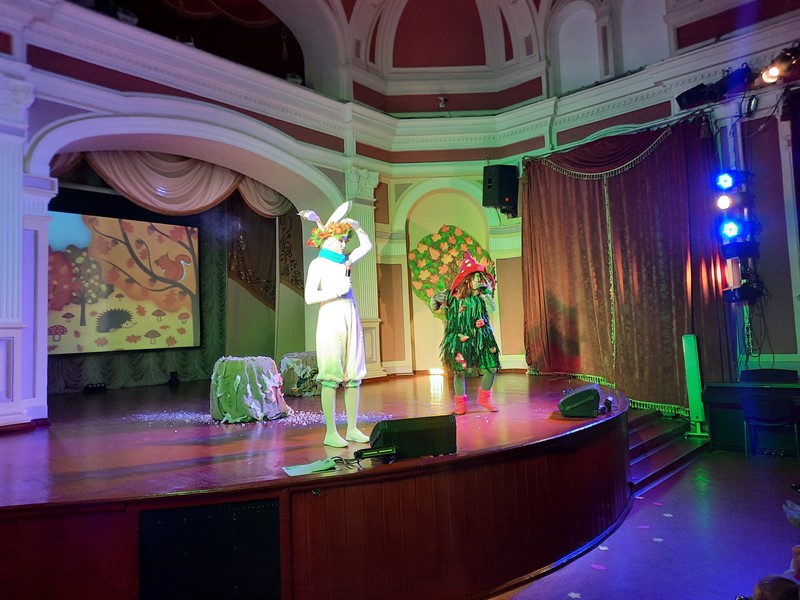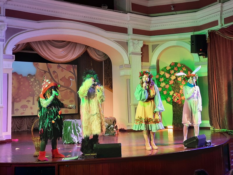 13 октября в нашем Дворце творчества состоялся традиционный праздник осени.К ребятам из творческих объединений пришли необычные гости – Кикимора, Леший и Заяц, которые затеяли коварный заговор. Они построили целый план поимки Осени. Но наша красавица Осень смогла убедить всю компанию принять смену времен года, а ребята ей в этом помогли. Они вместе сделали зарядку, вспомнили перелётных птиц, внимательно рассмотрели листья разных деревьев и угадывали овощи, фрукты и ягоды, которые можно сохранить на весь год.