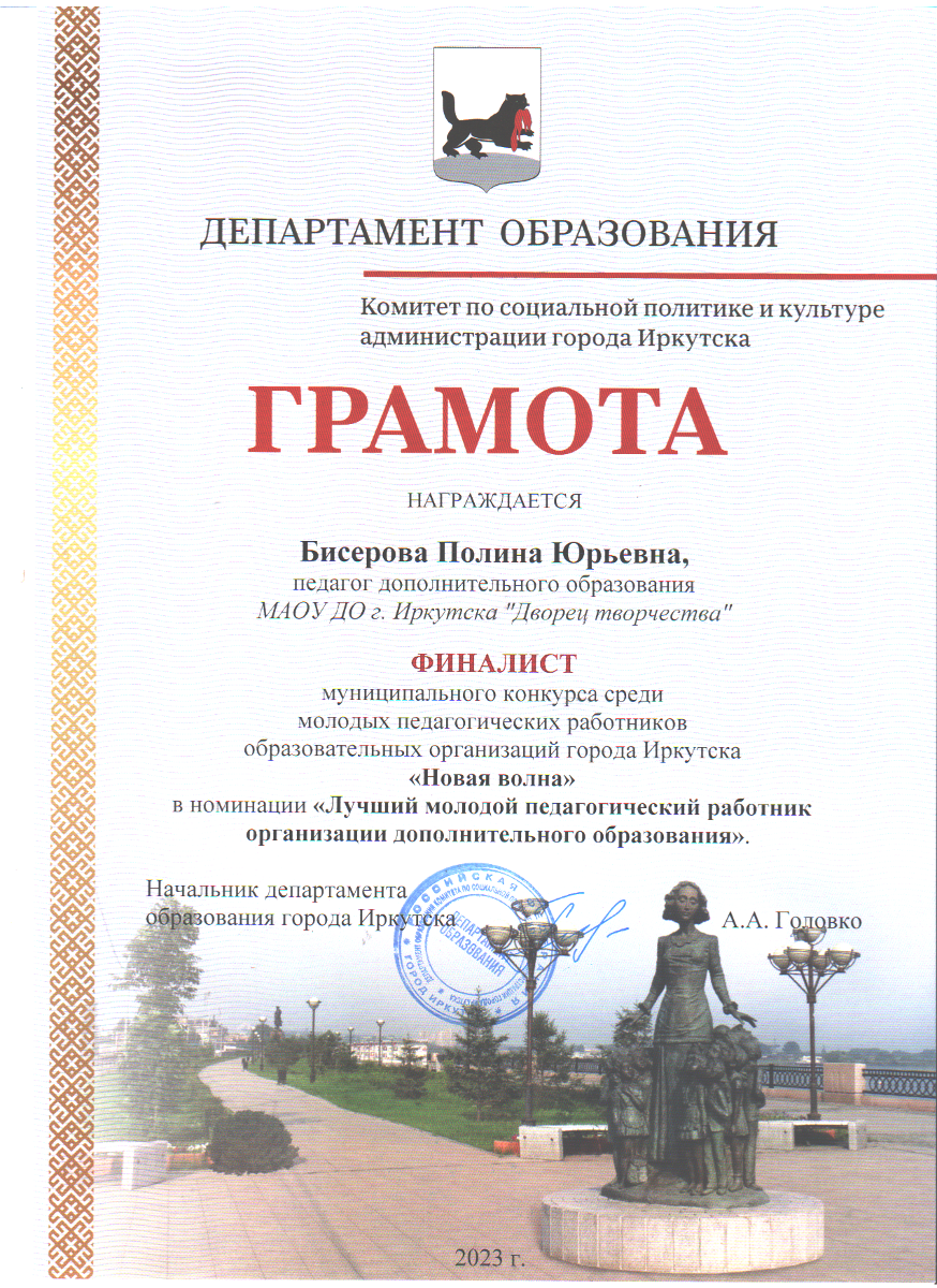 Бисерова Полина Юрьевна, педагог дополнительного образования, стала финалистом заочного этапа в номинации «Лучший молодой педагогический работник организации дополнительного образования».