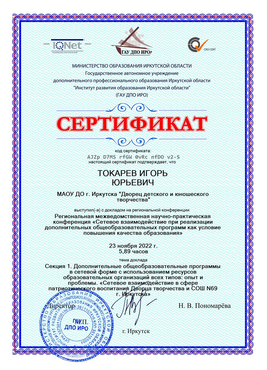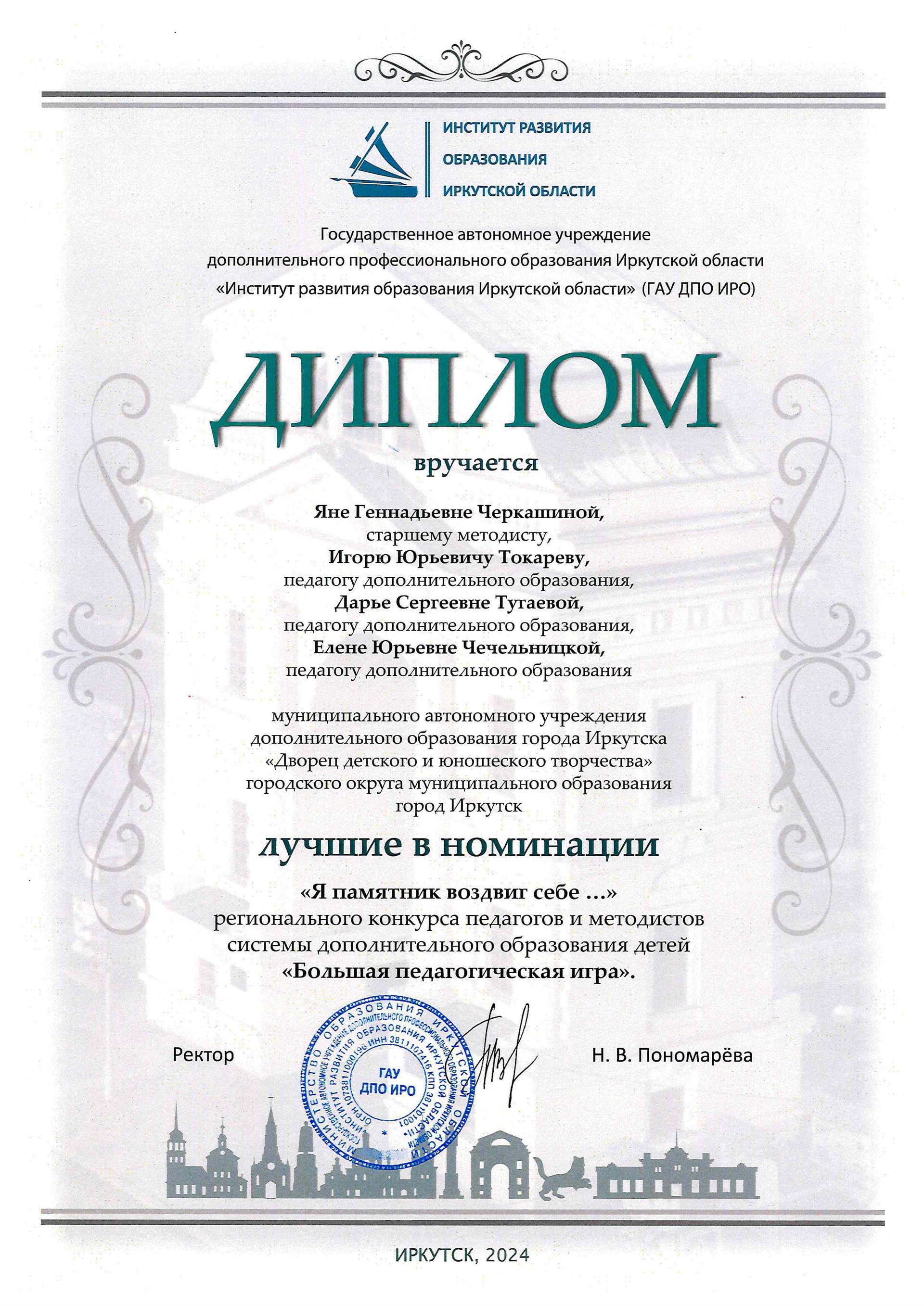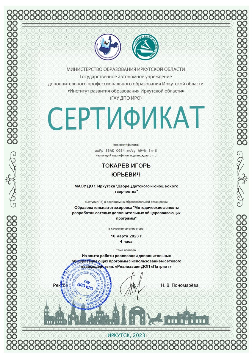 Сетевое взаимодействие в сфере патриотического воспитания МАОУ ДО «Дворец творчества» и МАОУ г. Иркутска СОШ № 69