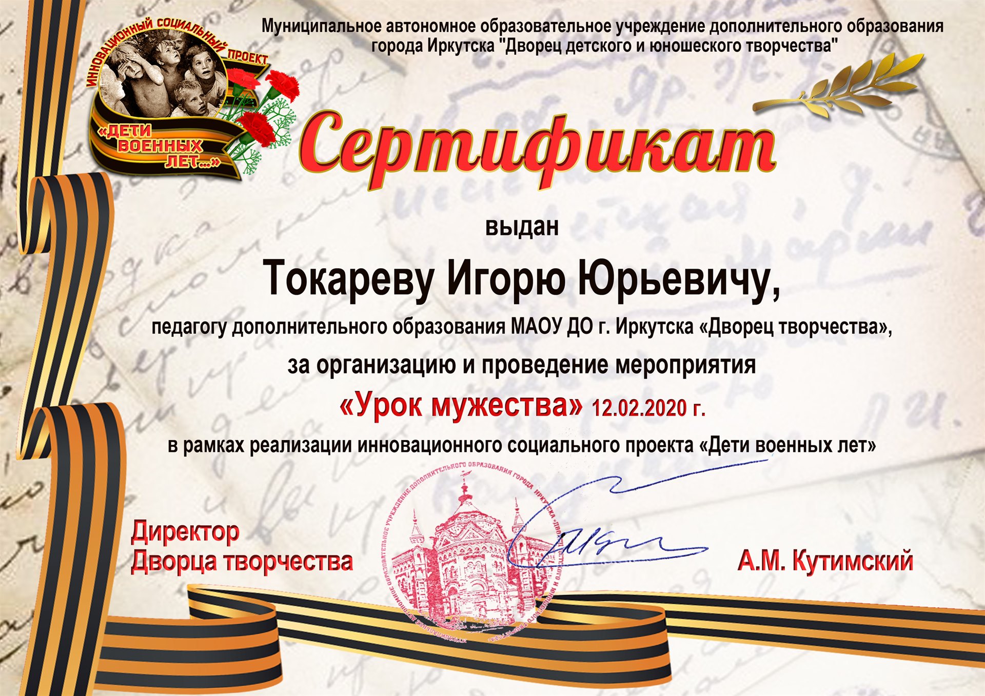 План-конспект открытого учебного занятия «Урок мужества» 2020 (Токарев И.Ю.)