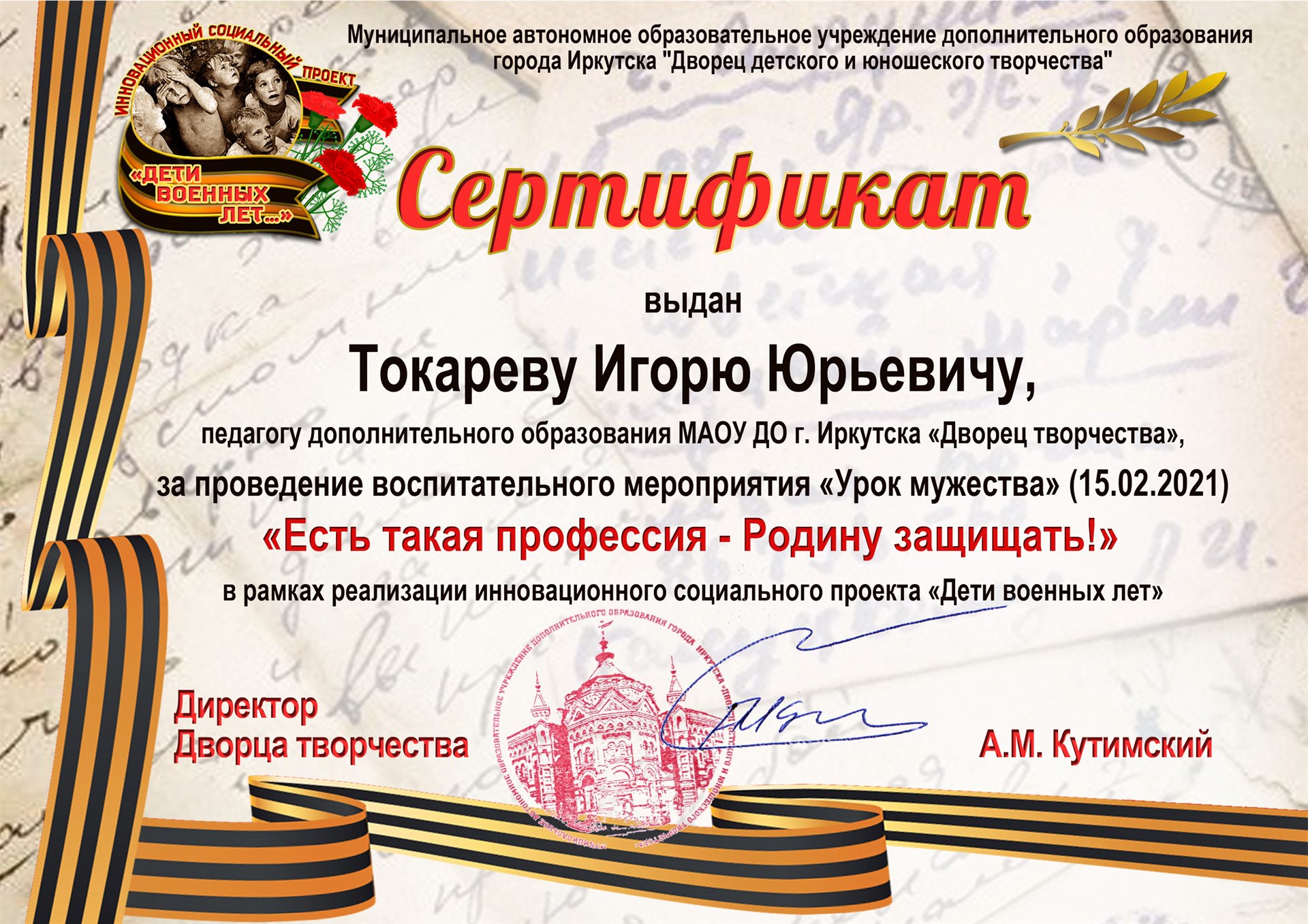 План-конспект открытого учебного занятия «Урок мужества» 2021 (Токарев И.Ю.)