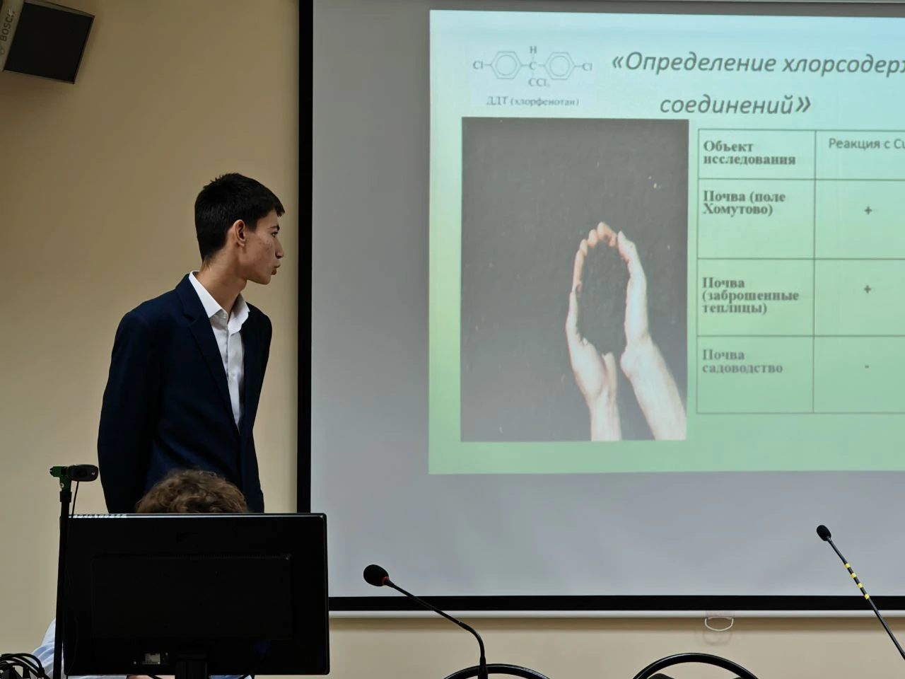 Биналиев Эмиль в секции Экология представил проект "Загрязнители почвы и их опасность для