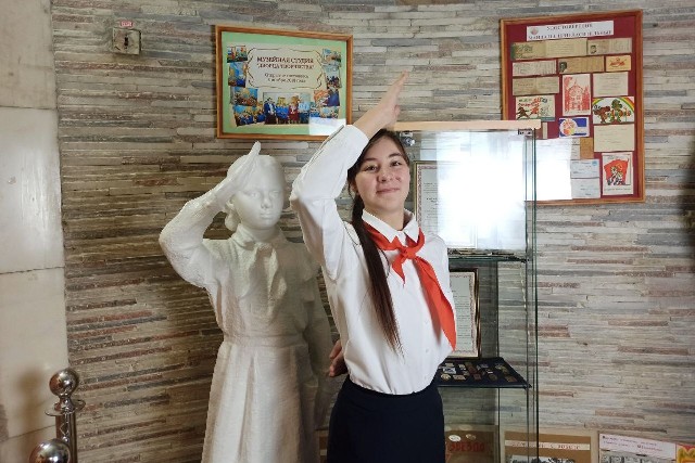 В советское время Дворец творчества назывался Дворцом пионеров и октябрят. Поэтому для проекта, где будет рассказана история Дворца творчества ребята подготовили сценарий и покадровый план съемки ролика о том, как завязывают пионерский галстук. Главным героем ролика стала старший методист Дворца творчества Галина Евграфовна Мирошниченко. Галина Евграфовна научила ребят завязывать пионерский галстук, рассказала о значении этого атрибута одежды пионеров, поделилась воспоминаниями о собственном пионерском детстве.