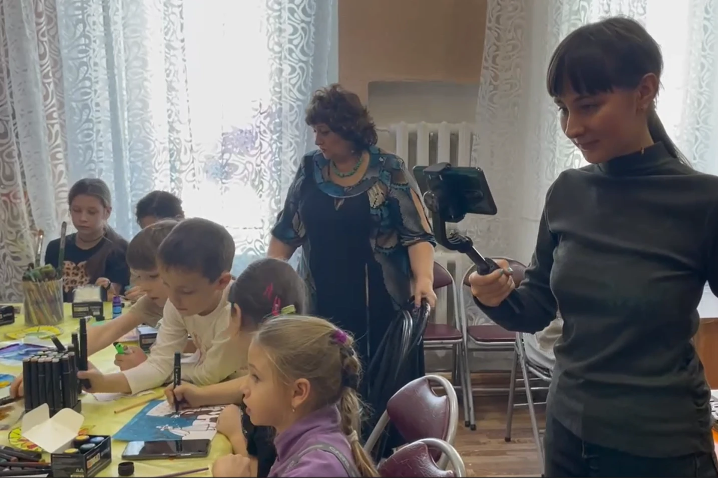 Юные журналисты, занимающиеся по программе «Пиши ярко (интернет-журналистика)» совместно с педагогом Еленой Юрьевной Чечельницкой посвятили съемочному процессу не одно занятие. Для подготовки сюжета в стиле «рум-тур» (англ. room tour — путешествие по комнате) ребята сняли игровое видео с проходом по всем этажам Дворца творчества, а затем в сотрудничестве с другими педагогами и учащимися Дворца были отдельно сняты эпизоды занятий разнообразных творческих объединений в разных кабинетах.