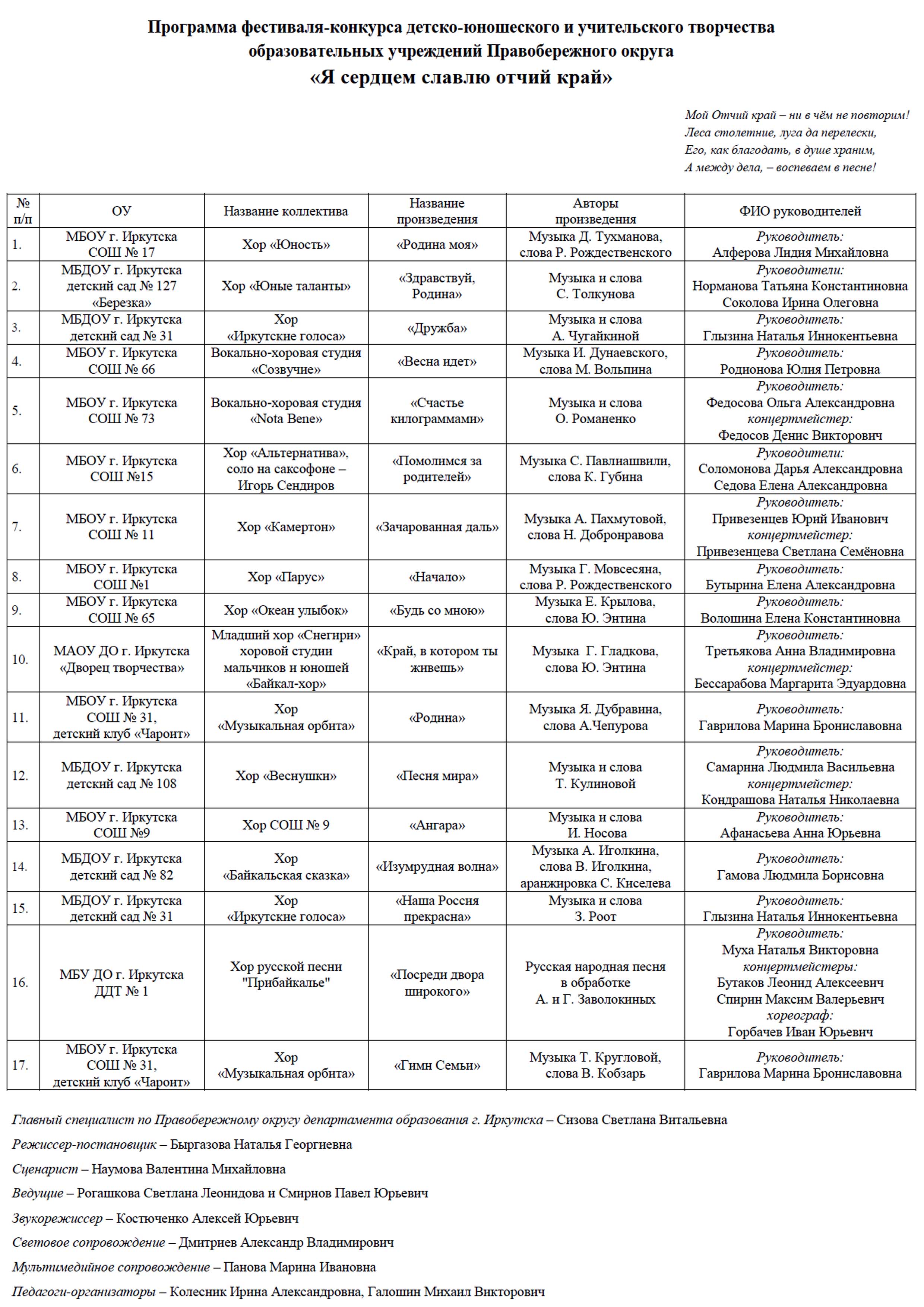 Фестиваль-конкурс детско-юношеского и учительского творчества образовательных учреждений Правобережного округа «Я сердцем славлю отчий край»