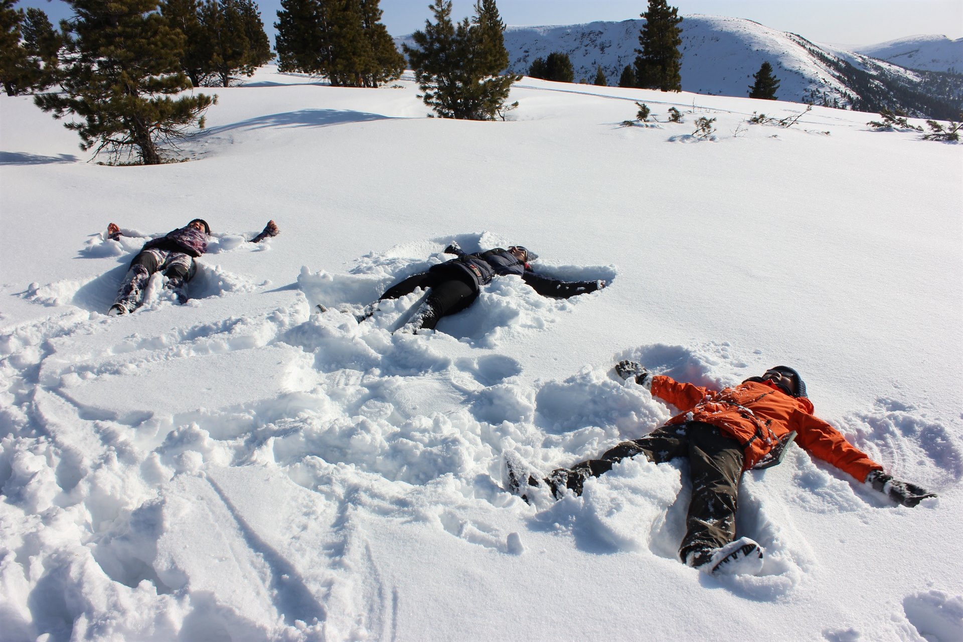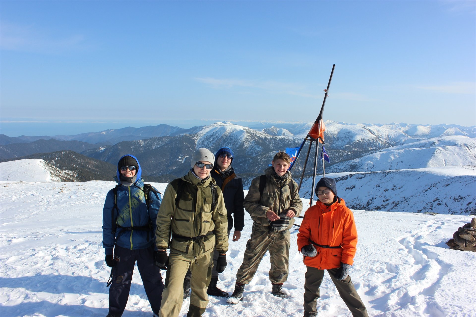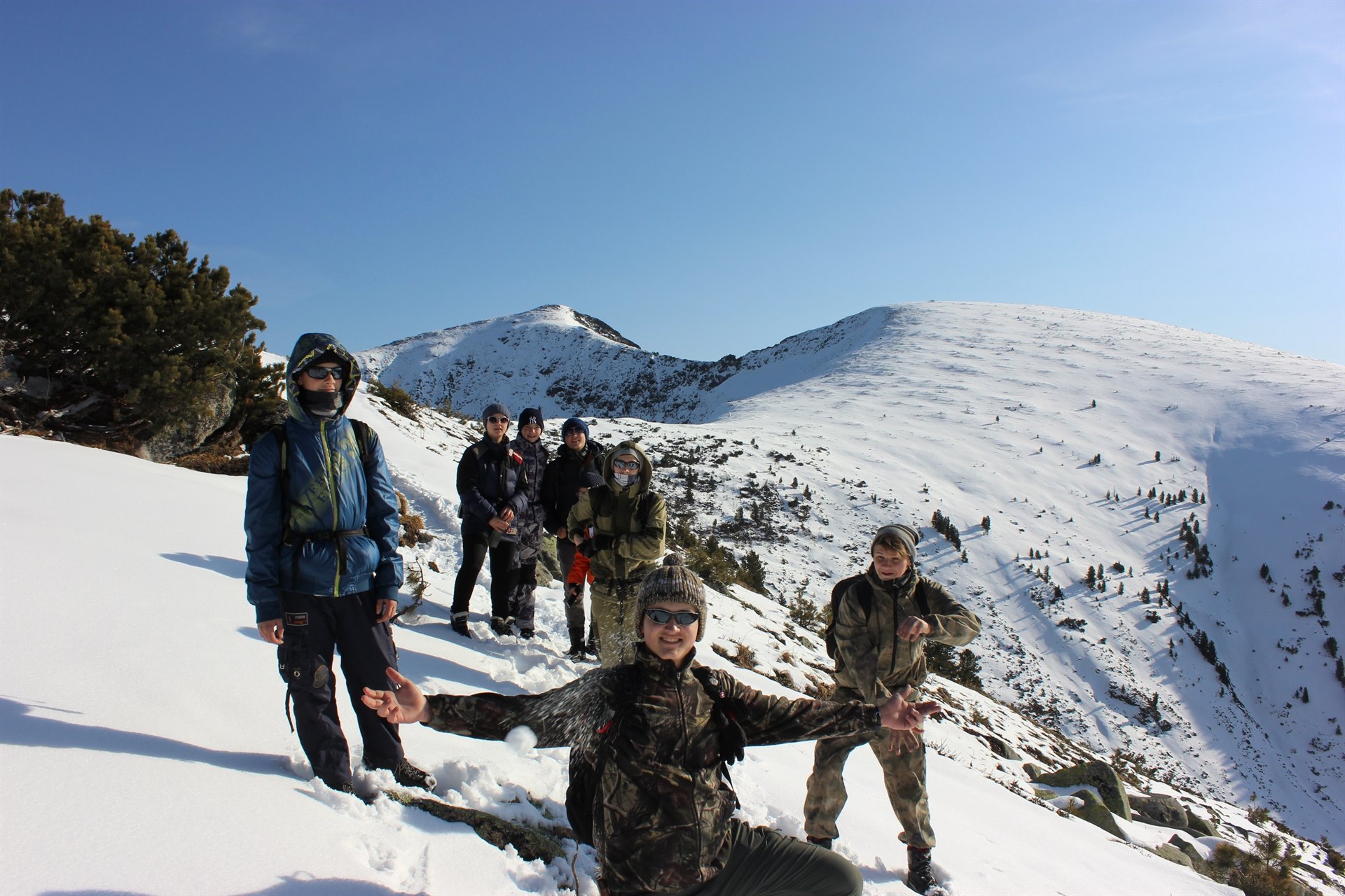 Наутро следующего дня природа опять решила одарить нас своими дарами: ярким солнцем, бирюзовым и безоблачным небом, а температура днем была +16 градусов. Подкрепившись завтраком и взяв с собой горячий чай в термосах, мы выдвинулись в путь на пик «Черского». Дорога до пика у нас заняла 2,5 часа, было пройдено ~4,5 км. Кто был на пике, тот знает, какой там открывается шикарный вид на хребет Хамар-Дабан когда стоит ясная погода. При этом на самом пике дул теплый, еле ощутимый ветер, такое летом редко бывает, а тут осень, снег, вершина и такое чудо. Спускаясь в лагерь, ребята и девчата начали играть в снежки, валяться в снегу и кататься с горок по снегу на своих "подштучниках". Как же иногда нам в городе не хватает простого незатейливого счастья и баловства, а тут подобное можно позволить. И вот он лагерь и снова готовка еды, сушка одежды и прочие бытовые заботы, но как только все сделано, можно позволить себе опять подурачиться: началось всё со снежков, а потом всё плавно перетекло в борьбу в снегу. После того, как остатки энергии были растрачены, переходим в помещение, пьем горячий чай с молоком и заводим задушевные беседы. Согревшись и просушившись, идем на смотровую площадку любоваться горами и прощаться, ведь завтра нам предстоит путь домой…