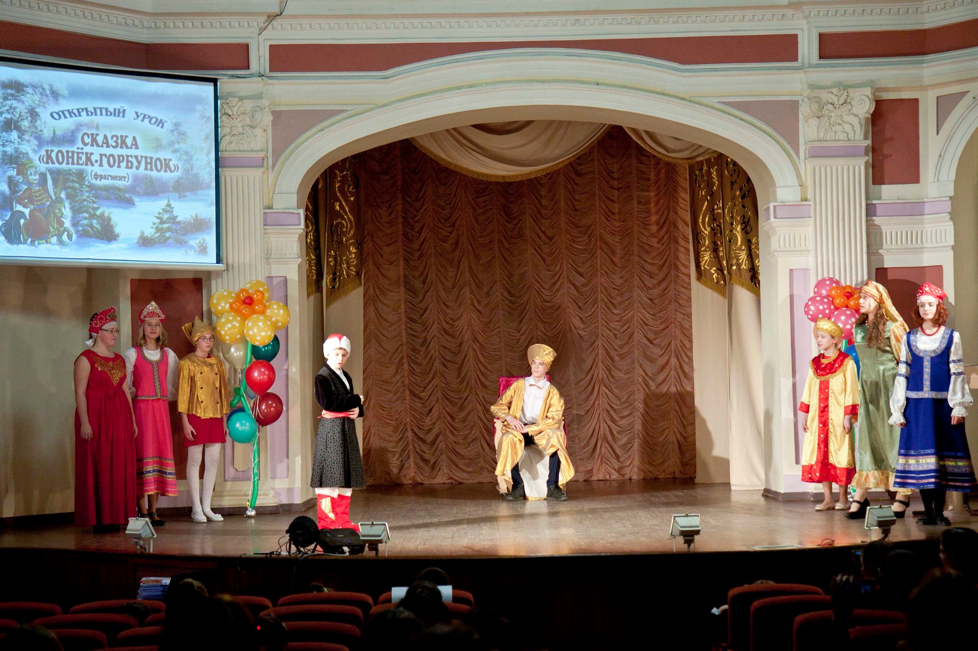 Сегодня во Дворце состоялся открытый урок кружка "Художественное слово. Культура речи", который проходил в два этапа: конкурс чтецов (в двух возрастных категориях) и театрализованный показ фрагмента сказки П. Ершова "Конек-горбунок".