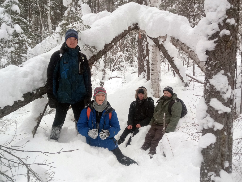Ребята, которые пошли, ни разу не пожалели об этом! Всю неделю шёл снег и это особенно ощущается за городом. Хоть тропа до "Витязя" изрядно хоженая, идти по ней было не просто, так как снега лежало на ней более чем достаточно. Да и не только на тропе хватало снега, он был везде и в таких количествах, что ветви хвойных деревьев свисали под тяжестью белого покрывала. От порывов ветра снег срывало с ветвей, и он осыпался вниз. Это подтолкну на кое-какие мысли…