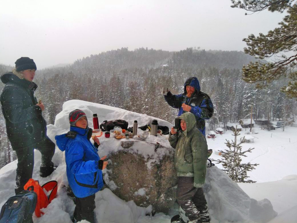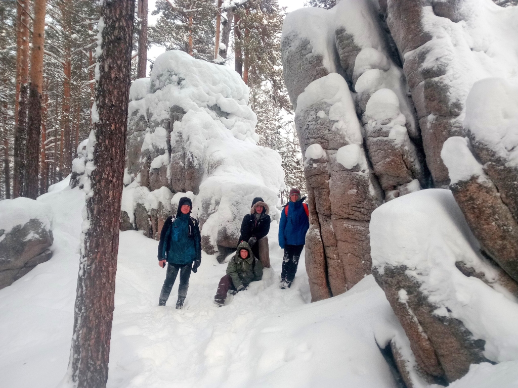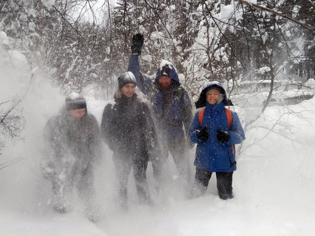 Было решено проверить новичков насколько они готовы к "природным" неожиданностям. Проходя под деревьями, на ветвях которых были большие скопления снега, он "удивительным" и "случайным" образом падал на головы сзади идущих. Спустя какое-то время новички научились реагировать на "капризы природы". За данным развлечением мы не заметили, как дошли до "Витязя".