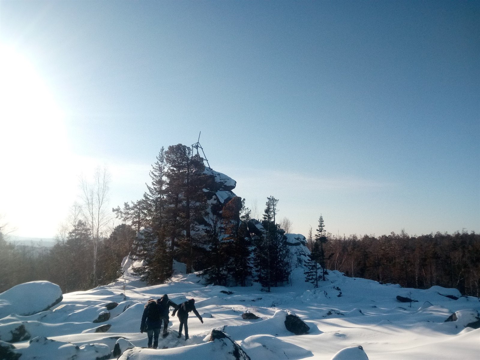 - Поднимаясь на сам скальник, необходимо соблюдать осторожность, так как все камни засыпаны снегом и щелей между камнями не видно. Если идти не аккуратно, то можно провалиться между камнями и повредить ноги, да и не только ноги.