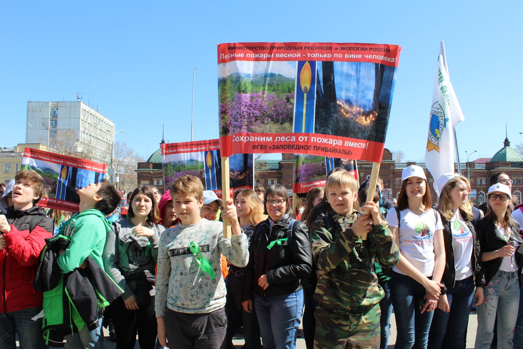 Акция «Сохраним леса Прибайкалья», 25 апреля 2018 года, после торжественного открытия в КДЦ «Художественный» была продолжена красочным шествием по центральным улицам города к площади у стадиона "Труд".