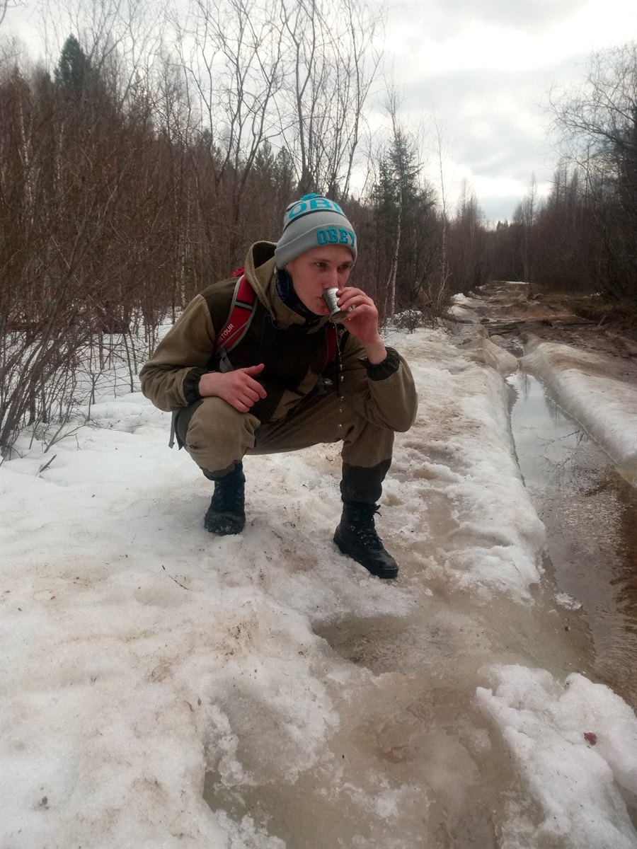 После осмотра окрестностей со скальника мы спустились вниз к костровищу, необходимо было сделать небольшие заметки в блокнот по результатам пройденного ПВД. Выпив еще по кружке чая, мы выдвинулись в обратный путь.