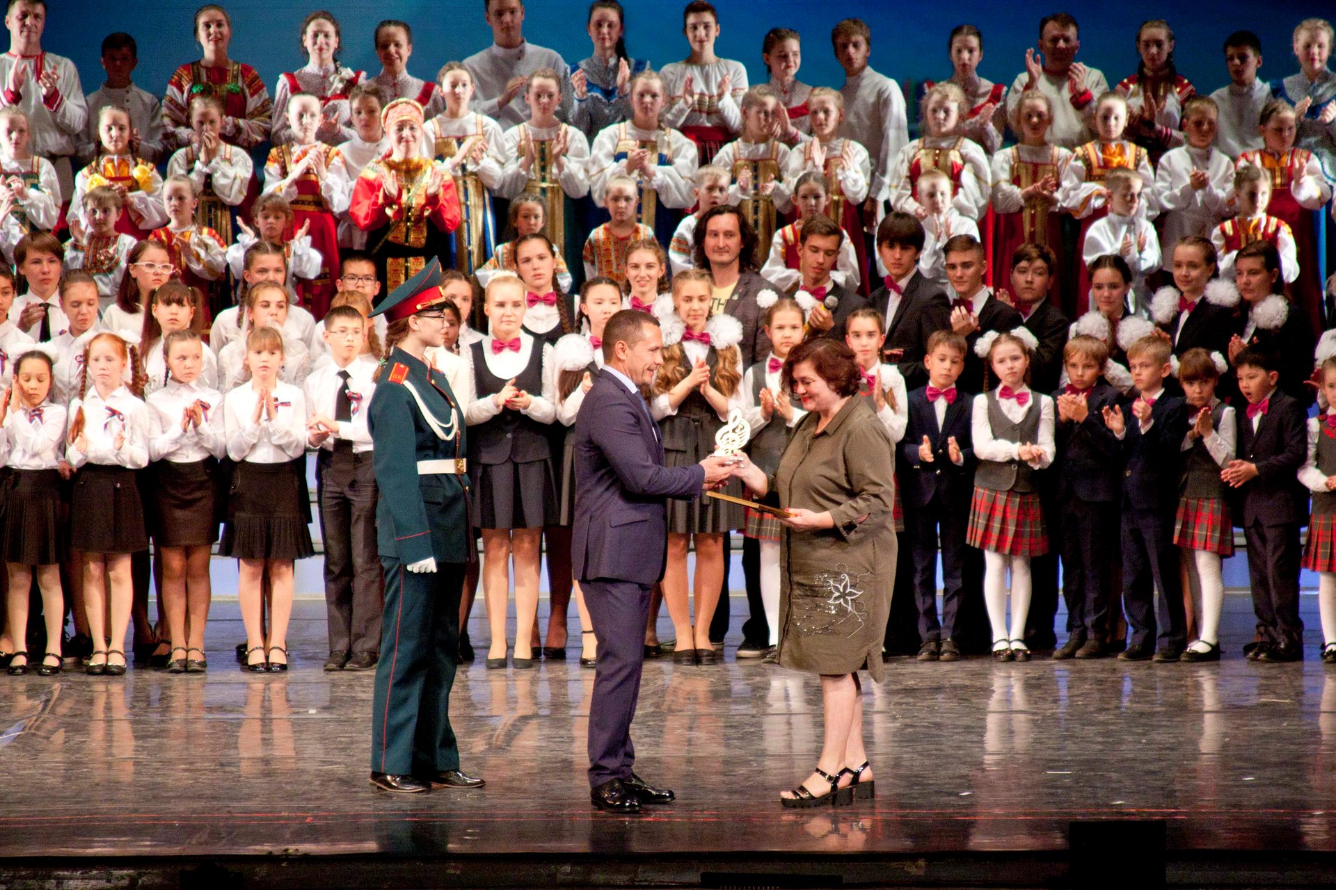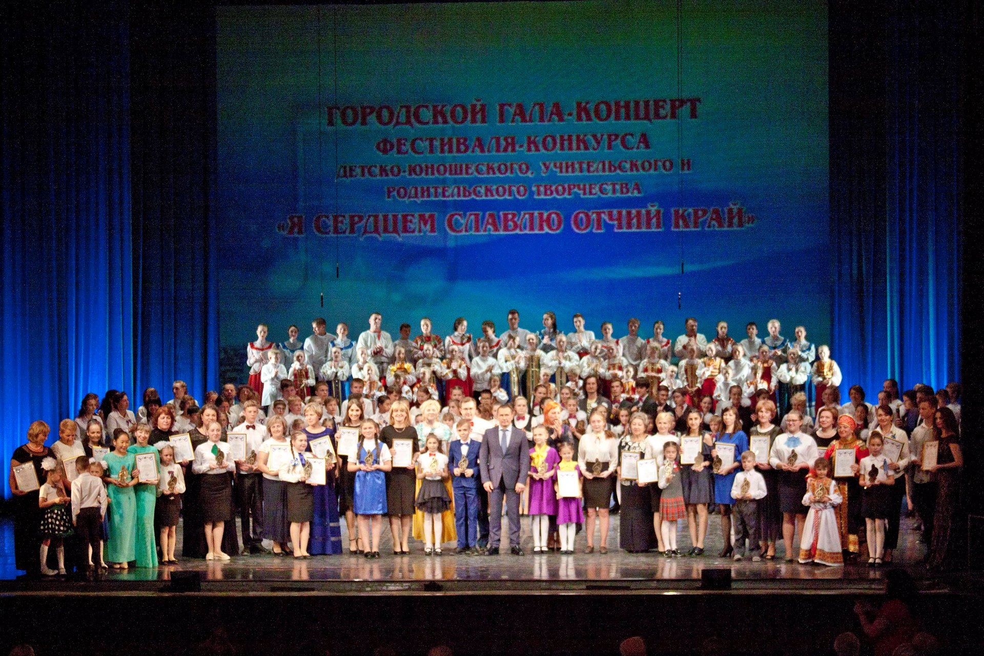 4 июня в Иркутском областном музыкальном театре им. Н.М.Загурского состоялся заключительный гала-концерт городского фестиваля-конкурса детско-юношеского, учительского и родительского творчества «Я сердцем славлю отчий край», который открывал сводный хор музыкальных руководителей образовательный учреждений нашего города. Всего в гала-концерте вошел 21 номер, которые представили детские сады, школы, учреждения дополнительного образования города Иркутска.