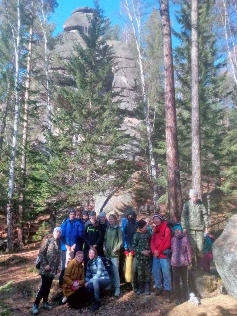 Данный ПВД (поход выходного дня) примечателен тем, что ряды «Лесных скитальцев» сильно пополнились. В этот раз в поход отправились 17 ребят и 3 родителей. Но мы не просто прогуливались, у нас была практическая работа с картой и ориентирование на местности, а также обозначение контрольных точек на карте. В данном походе вновь прибывшие «скитальцы» узнали, что на «Витязь» ведут две тропы. «Нижняя» тропа более длинная, но пологая, проходит по автомобильной дороге и приводит к подножью скальника «Витязь». А «верхняя» тропа покороче, но с крутыми подъемами, идет через лес и ведет на вершину скальника.