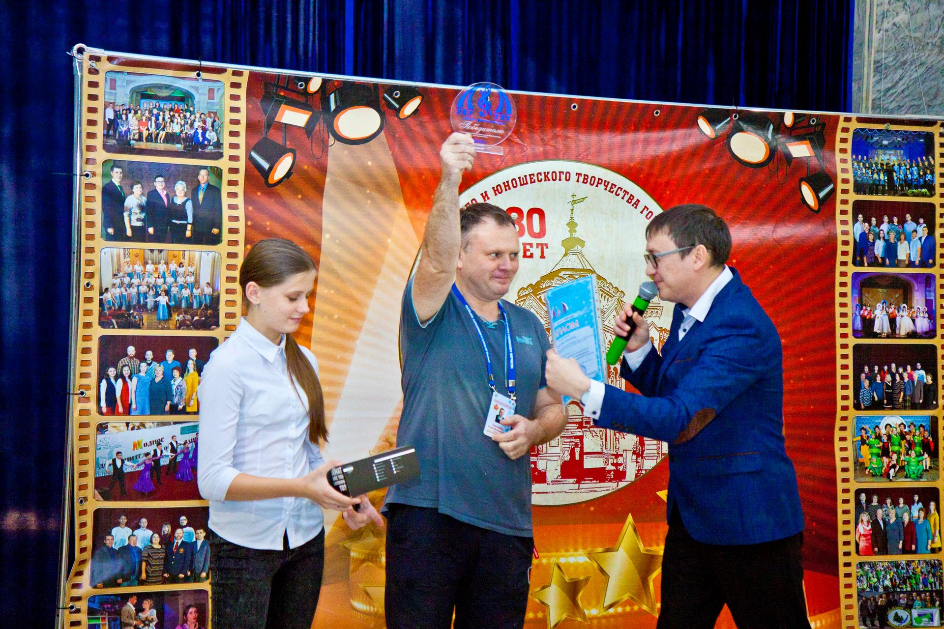 В рамках проведения праздничных мероприятий прошла торжественная линейка, где из рук директора Дворца, Антона Михайловича Кутимского, были вручены награды «100 лет системе дополнительного образования России» педагогам, которые проработали во Дворце творчества более 20 лет.