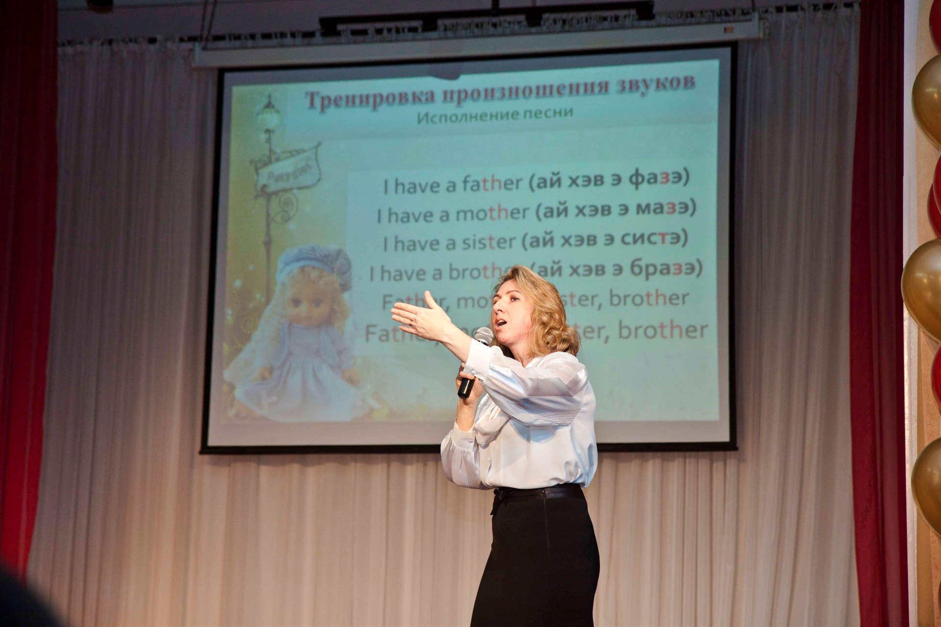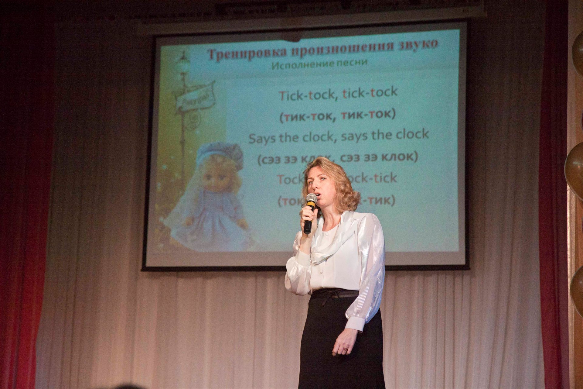 - мозговой штурм и получение немедленного результата: обучение участников мастер-класса правильному произношению звуков, английских слов, чтение скороговорок, исполнение песни на английском языке;