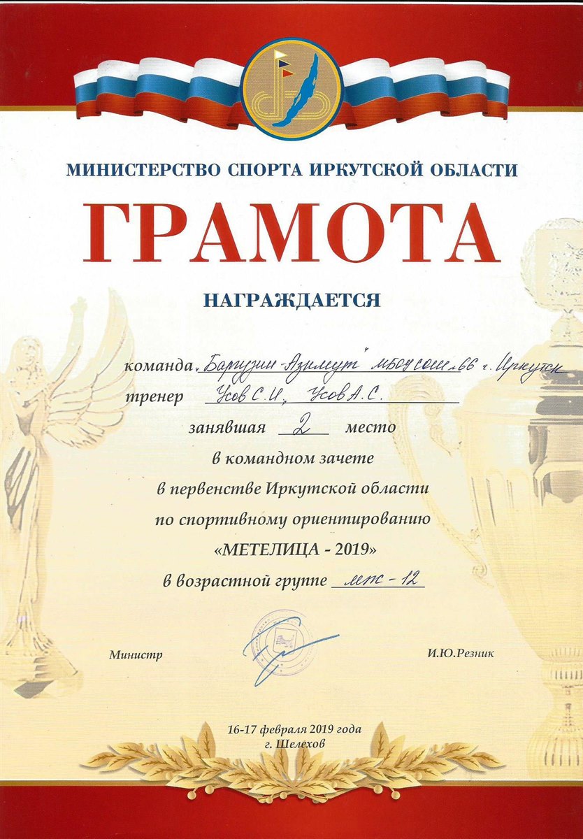 По сумме двух дней объединенные клубы "Баргузин-Азимут" в группе МЖ12 заняли 2 общекомандное место.