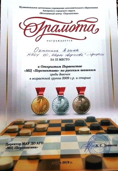 23 марта 2019 в Молодёжном центре «ЛИФТ»г. Ангарск прошло открытое первенство ДЮЦ «Перспектива» по русским шашкам среди юношей и девушек по двум возрастным категориям: 2010 год рождения и моложе и 2009 год и старше. В соревнованиях приняли участие воспитанники детских клубов, которые входят в состав ДЮЦ «Перспектива», а также воспитанники Дворца творчества г.Иркутска. Иркутская делегация составила 14 юных шашистов, все ребята занимаются у педагога Никифорова Д.К. Всего 73 шашиста, из них 28 девочек и 45 мальчиков, пришли сразиться на чёрно-белых полях. Кроме ребят, присутствовала большая армия болельщиков, которая состояла из родителей. Для многих наших ребят это были первые крупные соревнования. Можно с уверенностью сказать, что поездка оказалась очень успешной! Во всех группах собрался очень качественный и количественный состав участников. В каждой группе соревнования прошли в упорной борьбе.