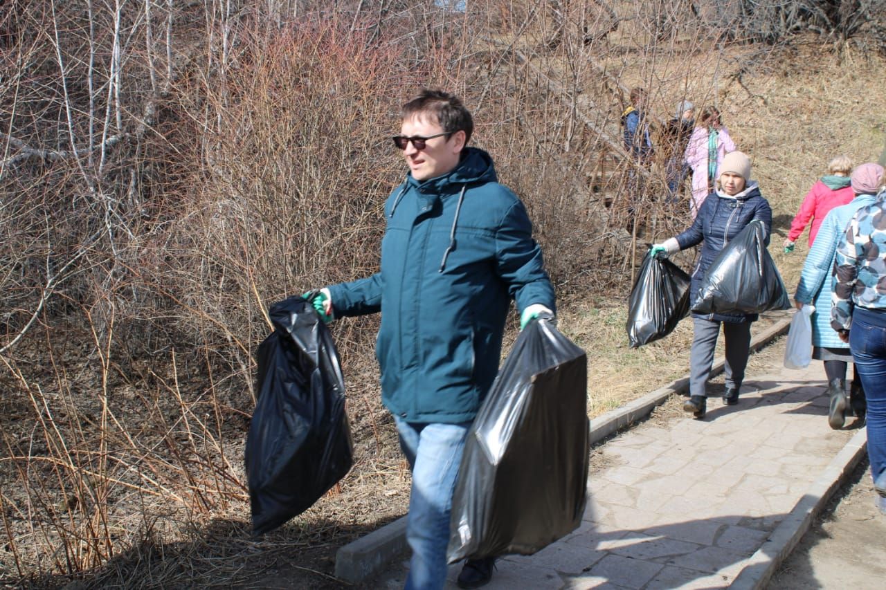 При солнечной погоде работалось дружно, с хорошим настроением, а главное – с пользой для окружающей природы.
