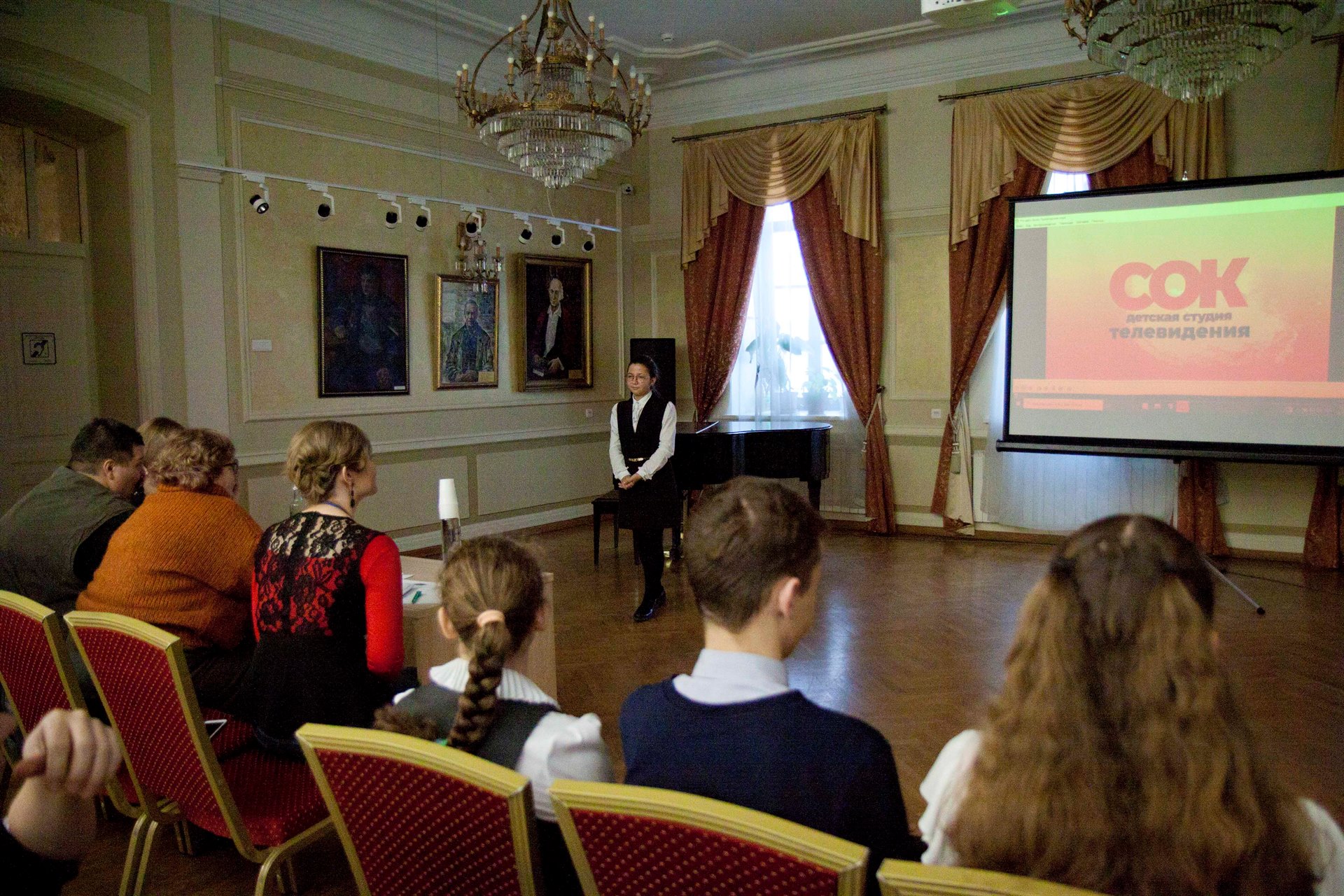 Учащиеся студии детского телевидения «СОК» приняли участие в работе секции «Фильм, фильм, фильм!», представив на суд жюри четыре проекта: «Живая память», «Что здесь было? Улица Пролетарская», «Экскурсия в Органный зал». Перед просмотром каждой работы ребята выступили на заседании секции перед членами жюри, участниками и зрителями, рассказав о том, как велась работа по написанию сценария, съемкам и монтажу, а после конкурсного просмотра отвечали на многочисленные вопросы.