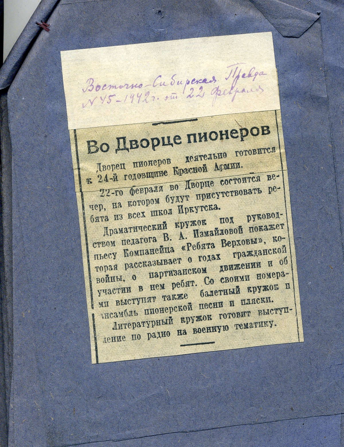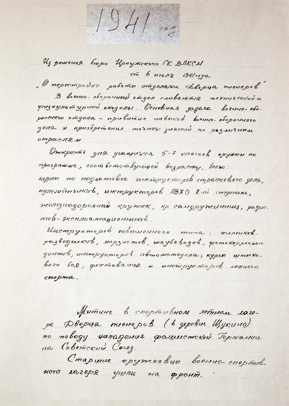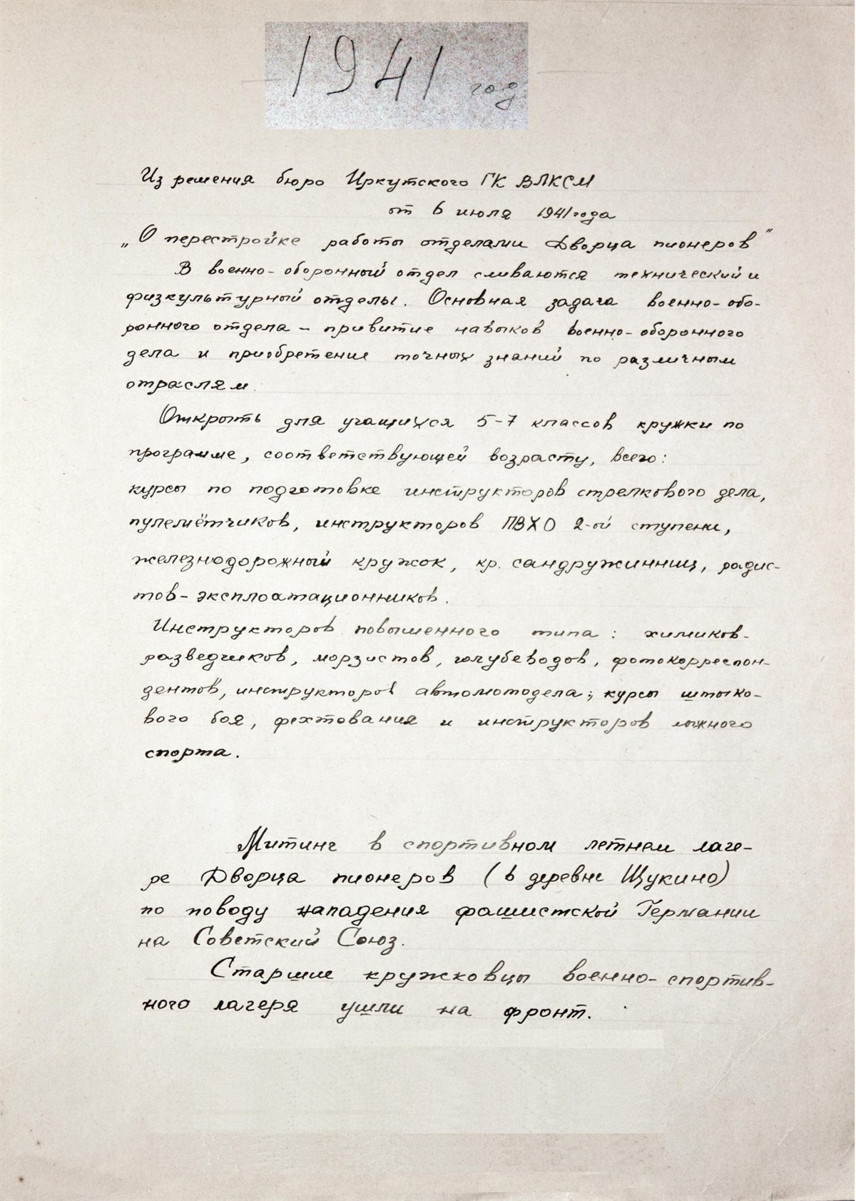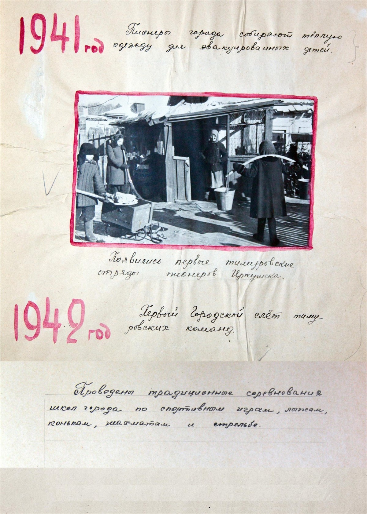 В годы войны все жили одной мыслью «Все для фронта! Все для Победы!». И, перелистывая страницы летописи Иркутской городской пионерской организации им. В.И. Ленина, невольно задумываешься о силе духа советского народа.