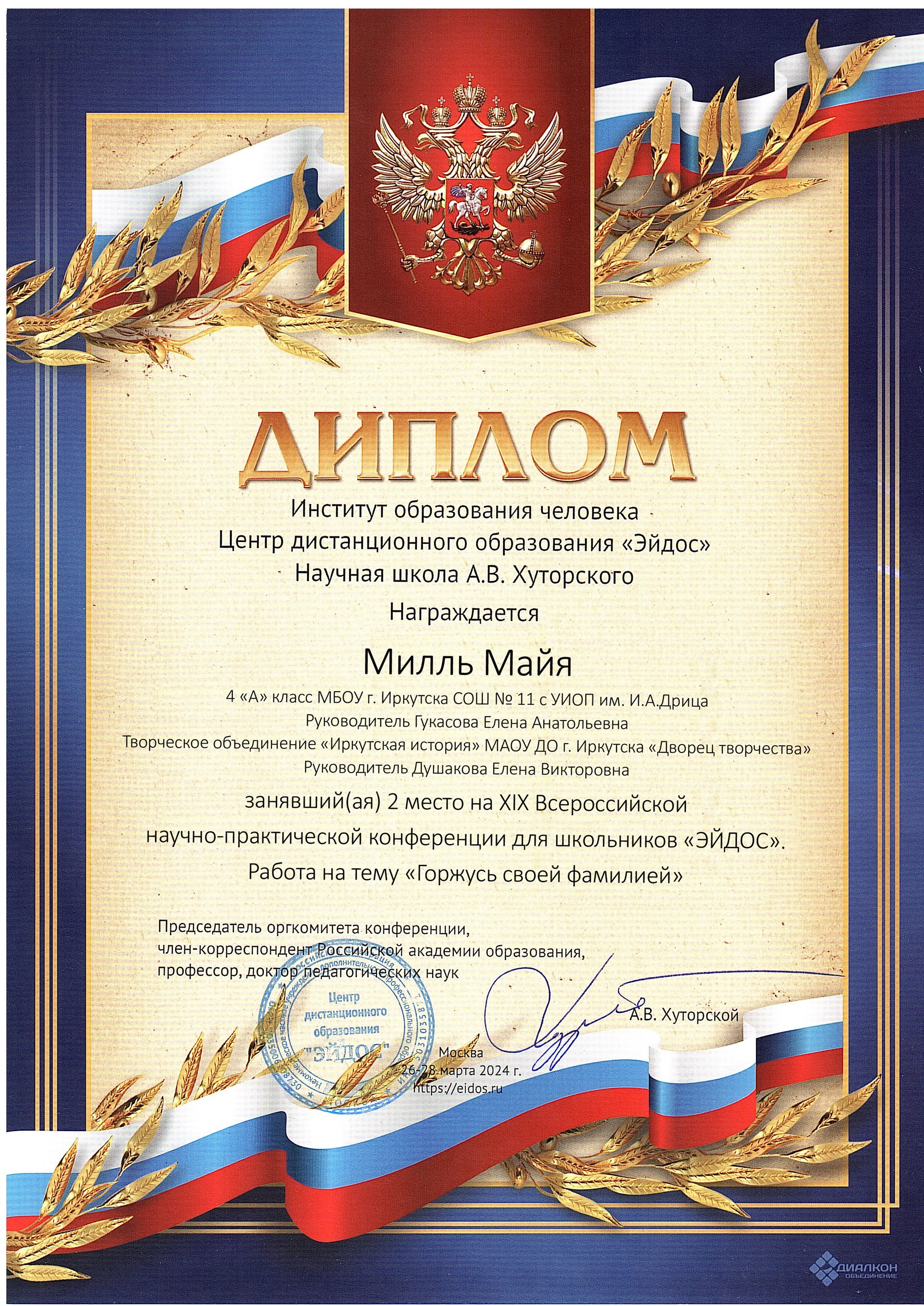 2 место – Милль Майя, проект «Горжусь своей фамилией»