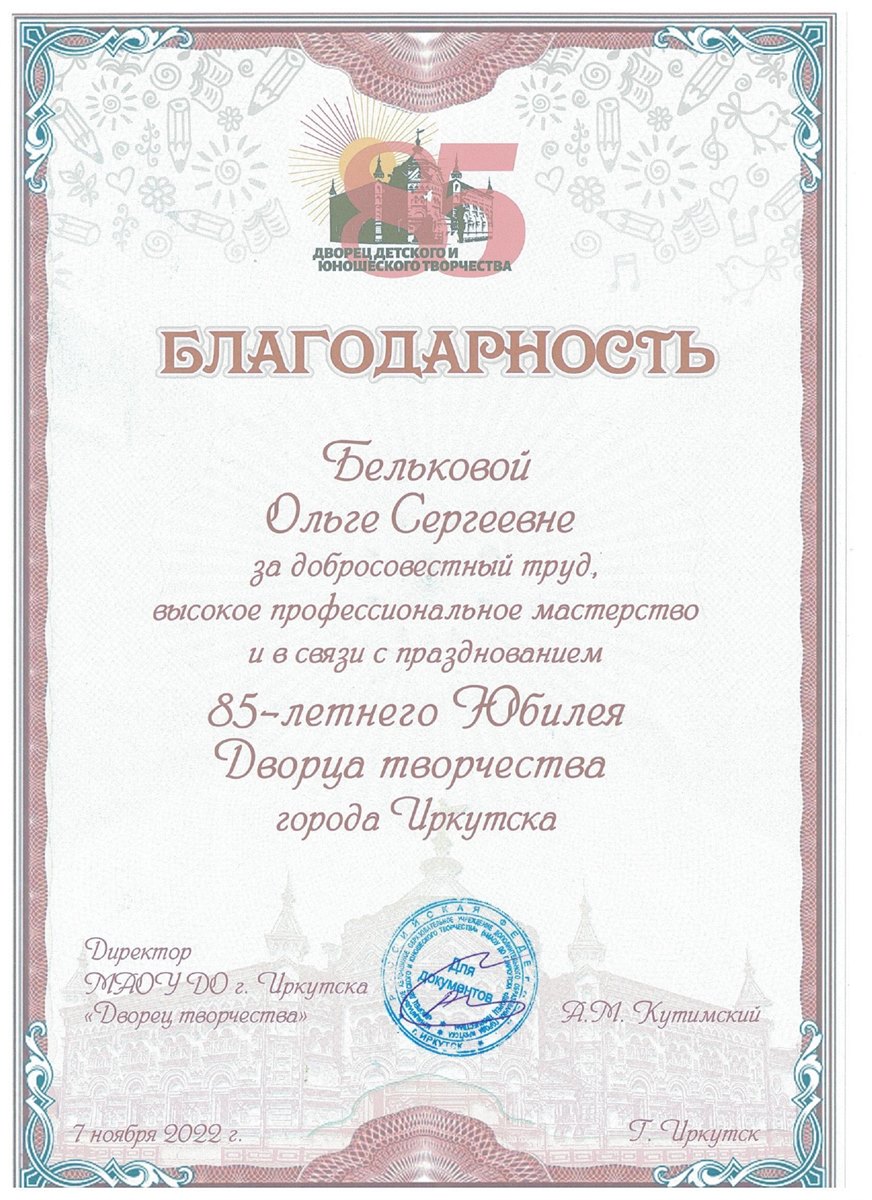 Курсы повышения квалификации «Методика и технология работы педагога дополнительного образования в современных условия»; «Психолого-педагогические основы образовательной деятельности» |